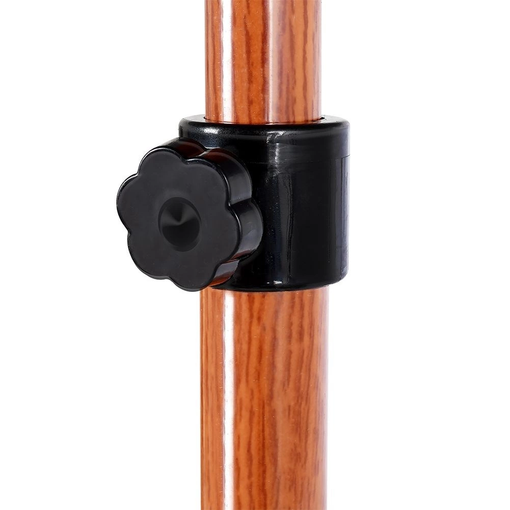 Močna kovinska palica z zaporno sponko zagotavlja stabilnost in enostavno nastavitev višine, hkrati pa po videzu spominja na naravni les.