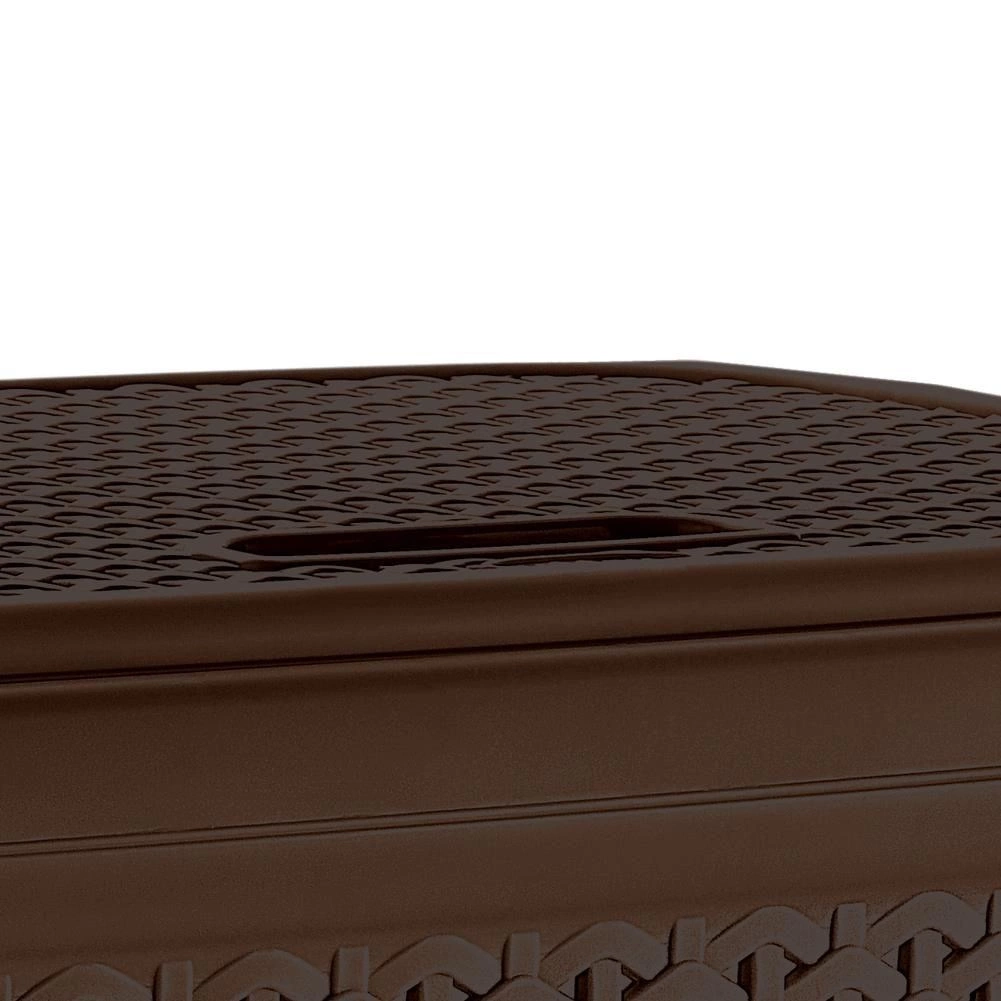 Koš je izdelan iz lahke in trpežne plastike v rjavi barvi, ki jo je preprosto uskladiti z večino interierjev. Ozká zasnova prihrani prostor – idealno ob pralnem stroju ali v kotu prostora. Integrirani stranski ročaji zagotavljajo udobno prenašanje.