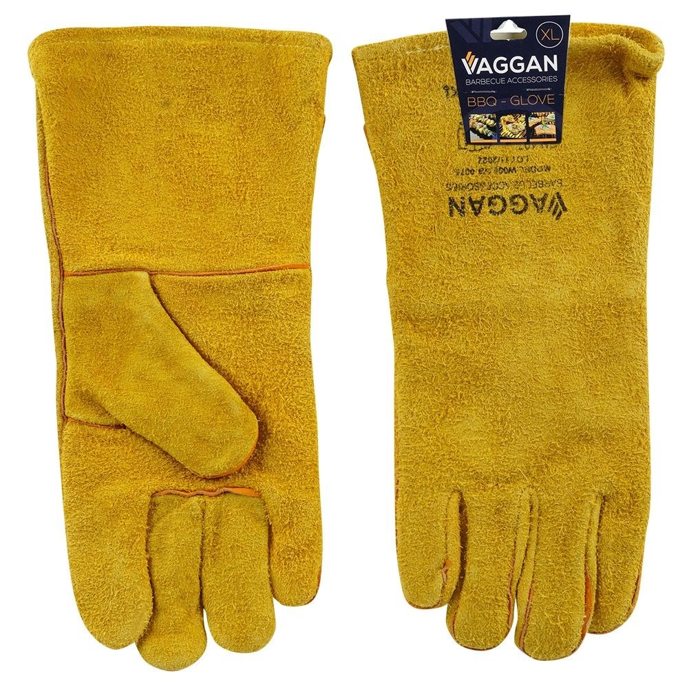 Te dolge usnjene rokavice so zasnovane za varno rokovanje z vročimi rešetkami, posodo in litino. Podaljšana manšeta ščiti zapestje in podlaket, medtem ko debelo usnje in notranja flis podloga zagotavljata udobje in zanesljiv oprijem. Univerzalna velikost XL je primerna za različne tipe rok.