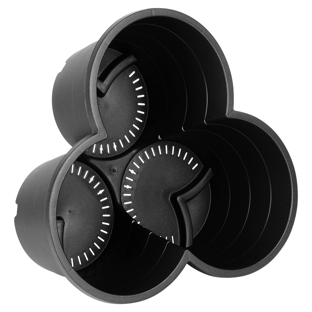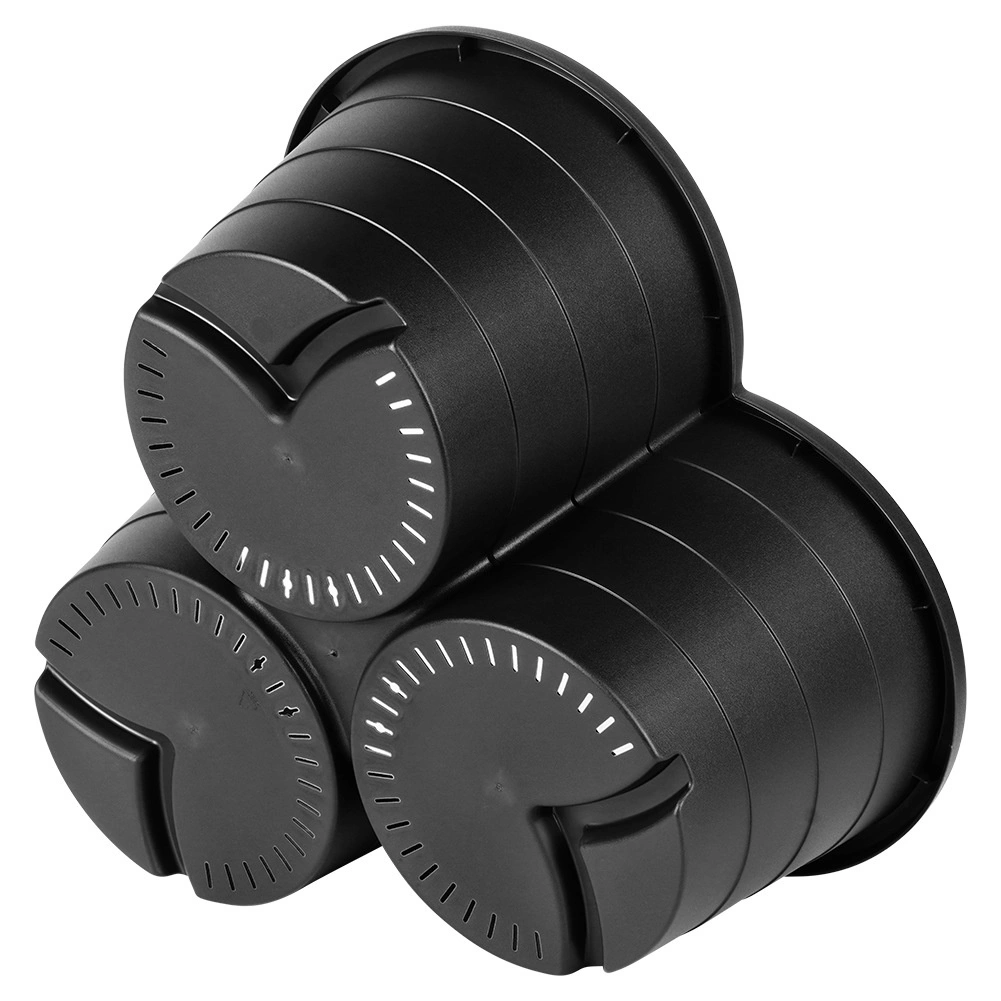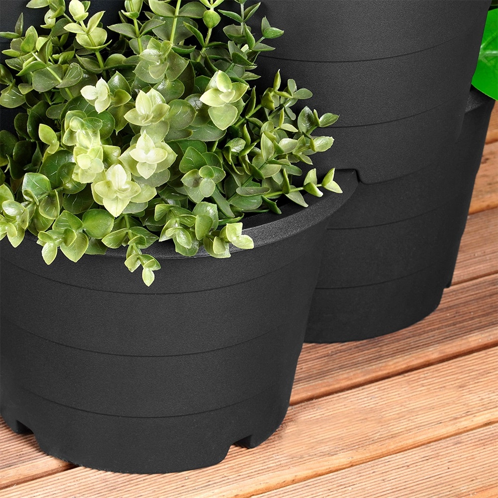 Vsak del sprejme tri različne rastline in ima vgrajene drenažne odprtine, ki odvajajo odvečno vodo. Odporen črn plast se enostavno čisti in je obstojen proti dežju, vetru in UV-sevanju, zato lahko cvetličnike uporabljate na prostem skozi vse leto.