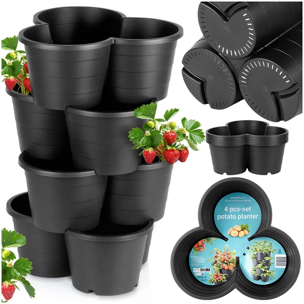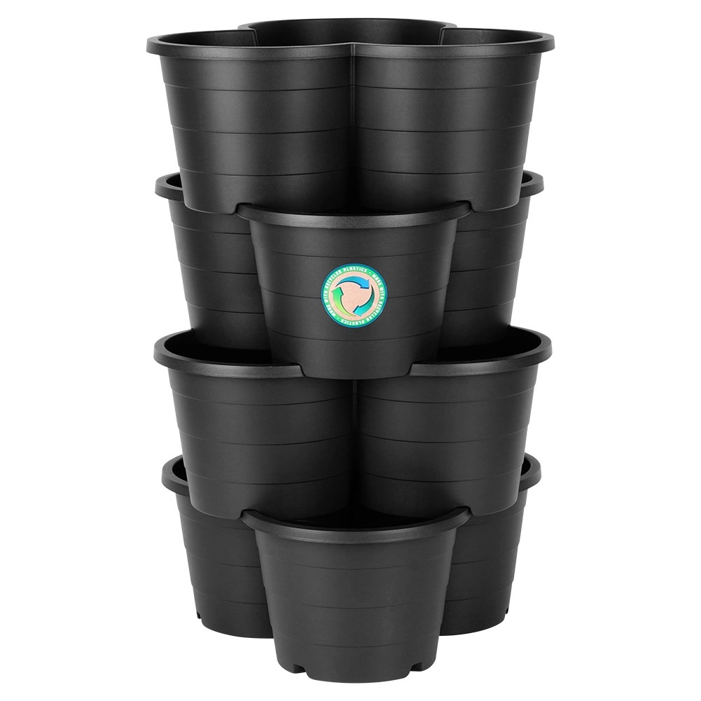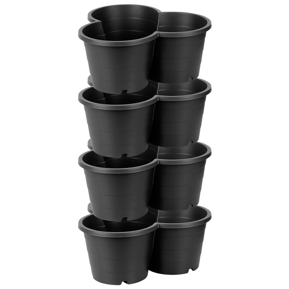 Posebne zaponke in oblika omogočajo varno zlaganje cvetličnikov enega na drugega ter ustvarjanje večnivojskih gred tudi v omejenem prostoru.