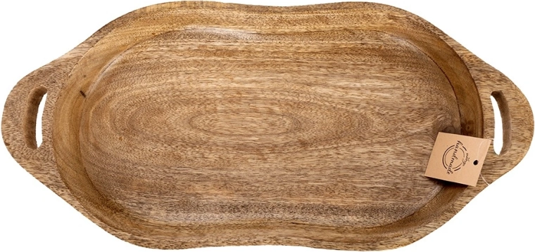Eleganten lesen servirni pladenj iz mangovega lesa z integriranimi ročaji za udobno prenašanje in varno serviranje. Zaradi naravne lesne strukture in dvignjenega roba je idealen za sir, sadje, sladice in prigrizke, pa tudi kot stilna dekoracija v kuhinji ali dnevni sobi.