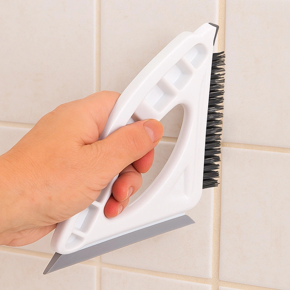 Multifunkcijska krtača 3v1 je kompaktni pomočnik za vsakodnevno čiščenje. Trde ščetine temeljito očistijo fuge med ploščicami in ozke reže, brisalnik hitro odvede vodo z gladkih površin, strgalo pa odstrani posušene obloge. Zaradi premišljene odprtine za prst in protizdrsnega rebrastega oprijema imate orodje vedno trdno pod nadzorom.