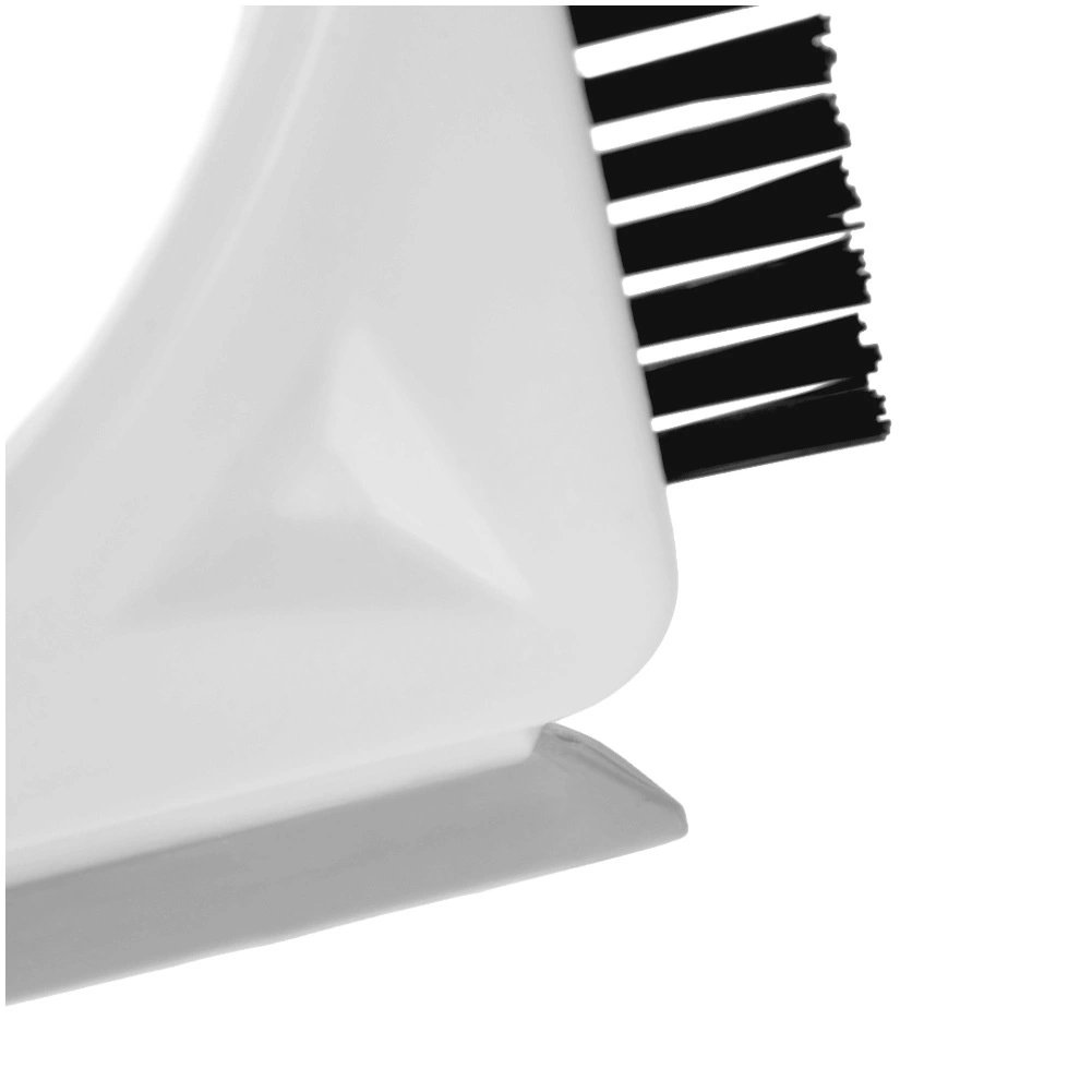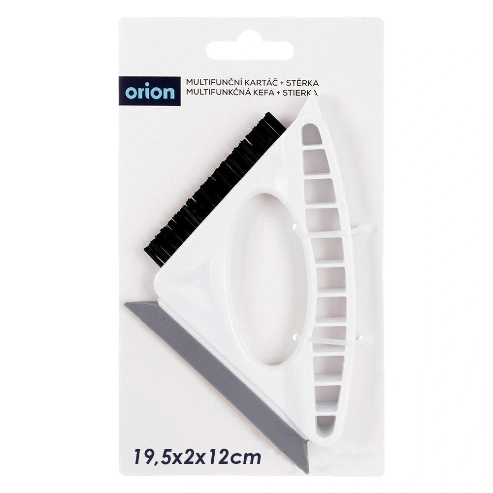 Praktično čistilno orodje združuje krtačo, brisalnik in strgalo v enem. Zahvaljujoč ergonomskemu oprijemu in čvrstim, trdim ščetinam zlahka očistite fuge, kote in težko dostopna mesta. Vgrajen prožen brisalnik hitro odstrani vodo s stekla, ploščic ali nerjavnih površin, strgalo pa se spopade s posušeno umazanijo. Idealno za kuhinjo in kopalnico.