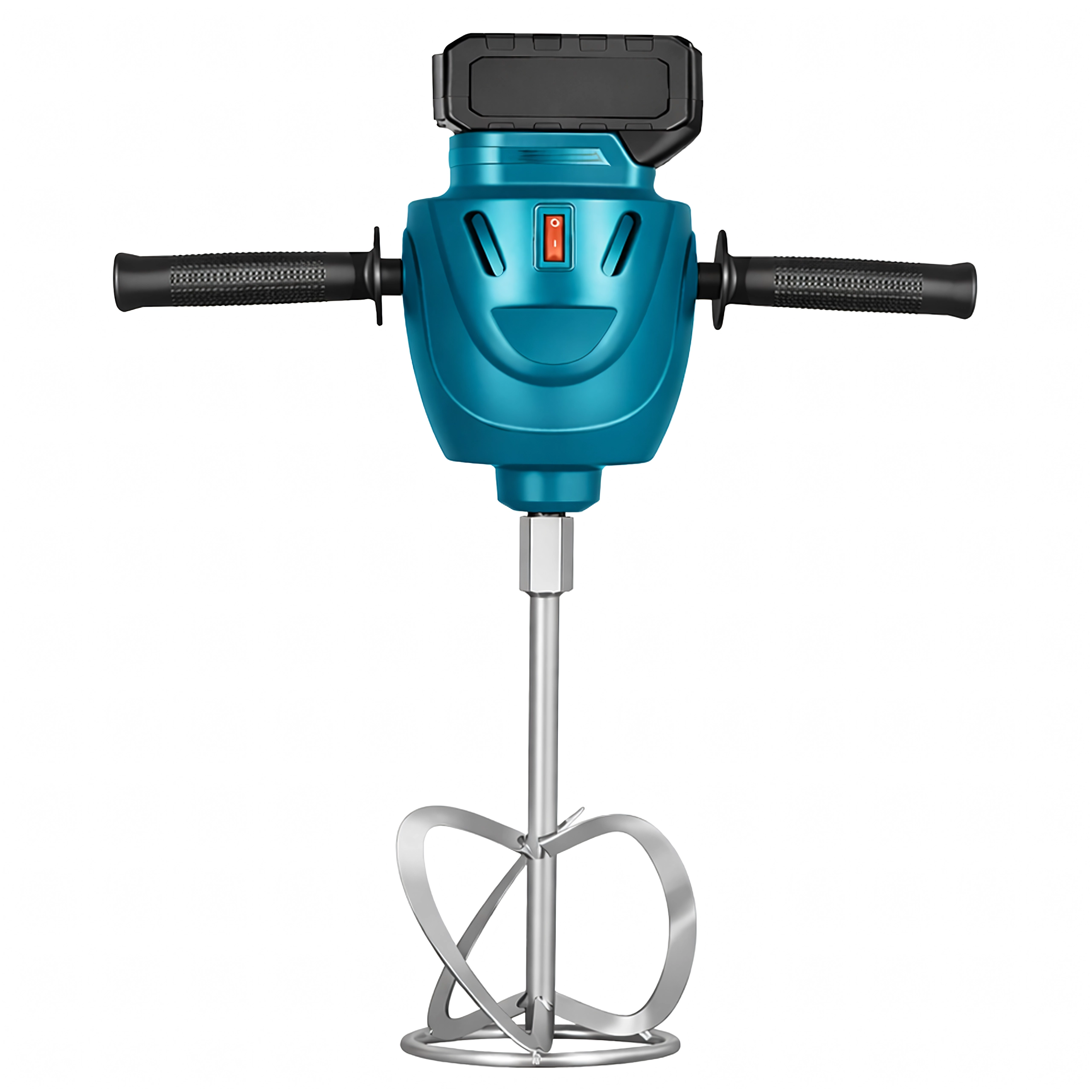 Praktični akumulatorski mešalnik/zemeljski vrtalnik združuje zmogljivost in mobilnost. Robustni motor z zamenljivimi nastavki obvlada mešanje gradbenih mešanic, malte, betona in barve, prav tako pa vrtanje odprtin v vrtnih tleh za sajenje ali namestitev stebričkov. Dvojni ročaji z gumiranim oprijemom zagotavljajo stabilnost in nadzor pri vsaki uporabi.
