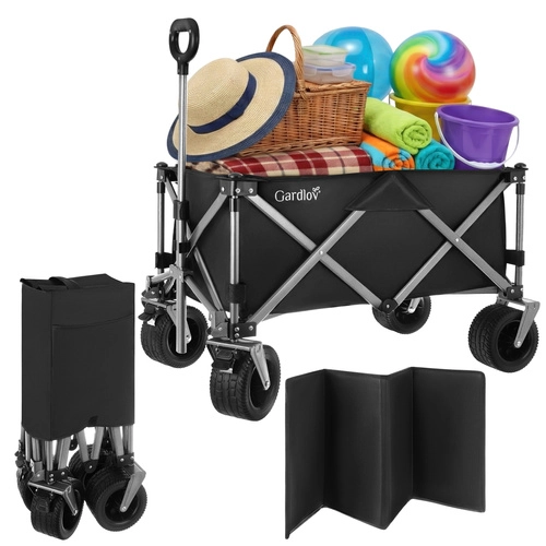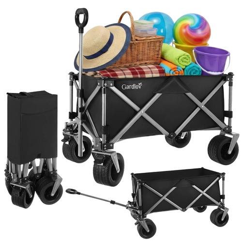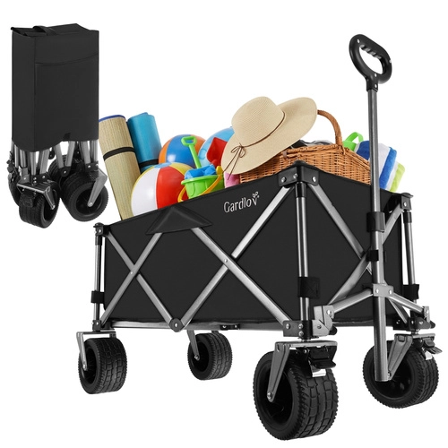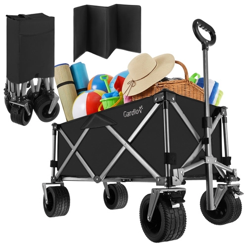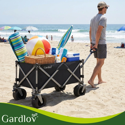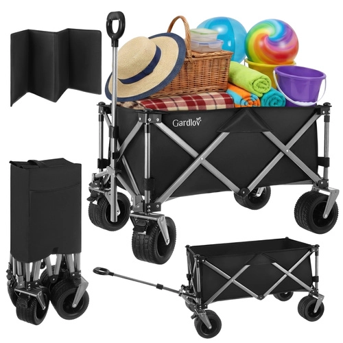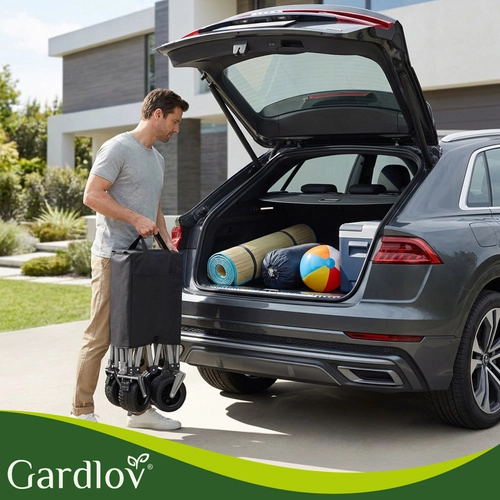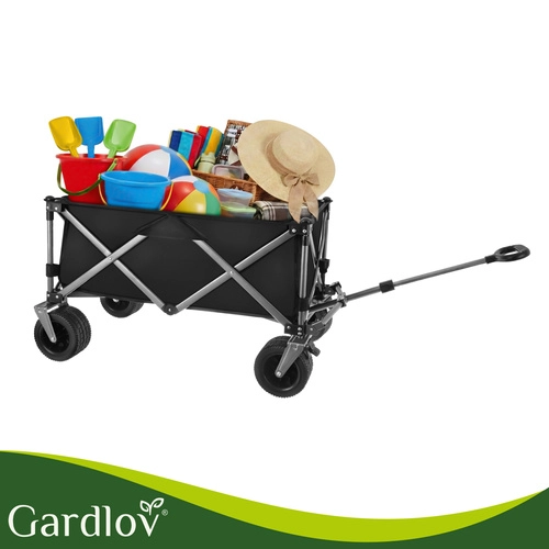 Univerzalen zložljiv voziček GARDLOV je idealen pomočnik za vrt, plažo, kampiranje in vikendico. Ponuja izjemno nosilnost 200 kg, velik volumen 150 l in vzdržljivo vodoodporno tkanino Oxford 600D s PVC premazom. Zahvaljujoč širokim terenskim kolesom, sprednjim vrtljivim kolesom 360° in teleskopski ročici zlahka prevaža težak in neroden tovor, po delu pa se hitro zloži na kompaktne mere.