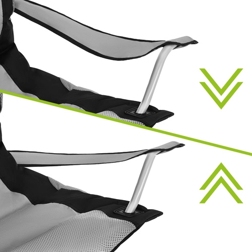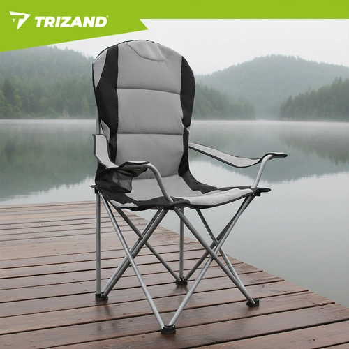 Udoben zložljiv stol TRIZAND v sivo‑črni izvedbi ponuja nosilnost 120 kg, trden kovinski okvir in zračne panele za celodnevno udobje ob vodi ali v kampu. Zahvaljujoč hitremu zlaganju in priloženi torbi ga enostavno prenašate, medtem ko naslonjala za roke z držalom za pijačo zagotavljajo brezkompromisen počitek.