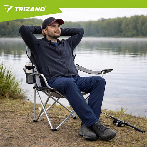 Uživajte v udobju pri ribolovu, na vrtu ali na izletih. Stol TRIZAND združuje stabilno križno konstrukcijo z odporno tkanino Oxford 600D, ki se bolje upira obrabi in vlagi. Visoko naslonjalo, mehko sedišče in nastavljiva naslonjala za roke zmanjšujejo utrujenost hrbta in ramen tudi pri daljšem sedenju.