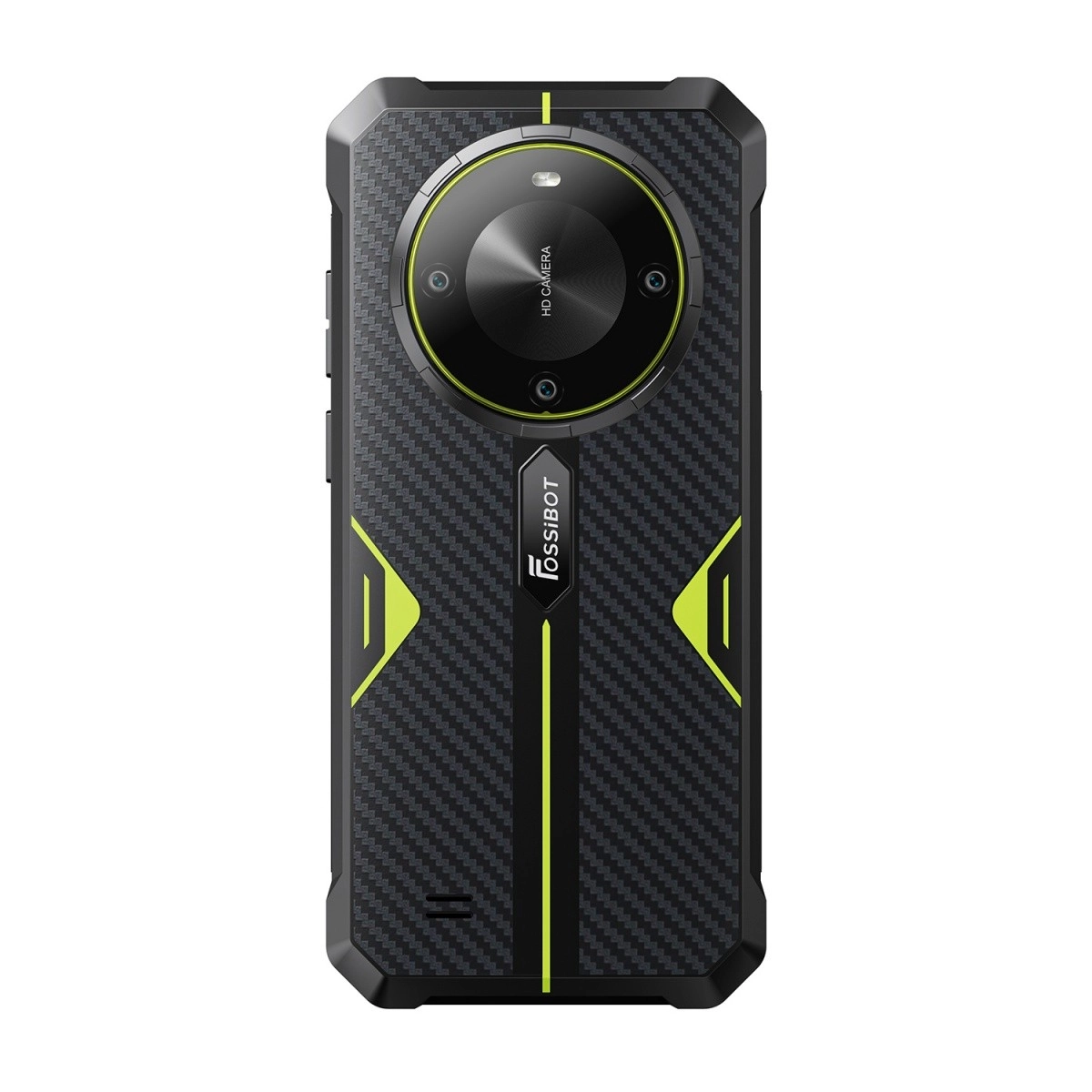 Krožni modul z več lečami in napisom »HD Camera« poudarja sposobnosti telefona za zajem podrobnih fotografij in videoposnetkov. Praktičen stranski gumb s teksturo olajša odklepanje in upravljanje, priključek USB‑C ter zatesnjene reže za kartice SIM/TF povečujejo uporabnost v vsakdanji rabi.