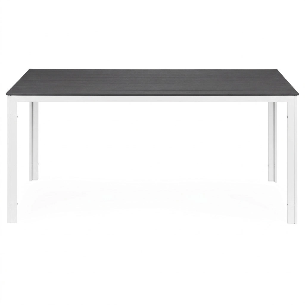 Uživajte v skupnih trenutkih na prostem v slogu in brez skrbi. Vrtna miza MULTIGARDEN združuje minimalističen dizajn v elegantni sivo‑beli barvi s praktičnimi materiali. Robustni okvir iz jeklenih profilov je trden in oblikovno stabilen, medtem ko polywood plošča z razmaki omogoča odtok vode in verno posnema strukturo lesa.