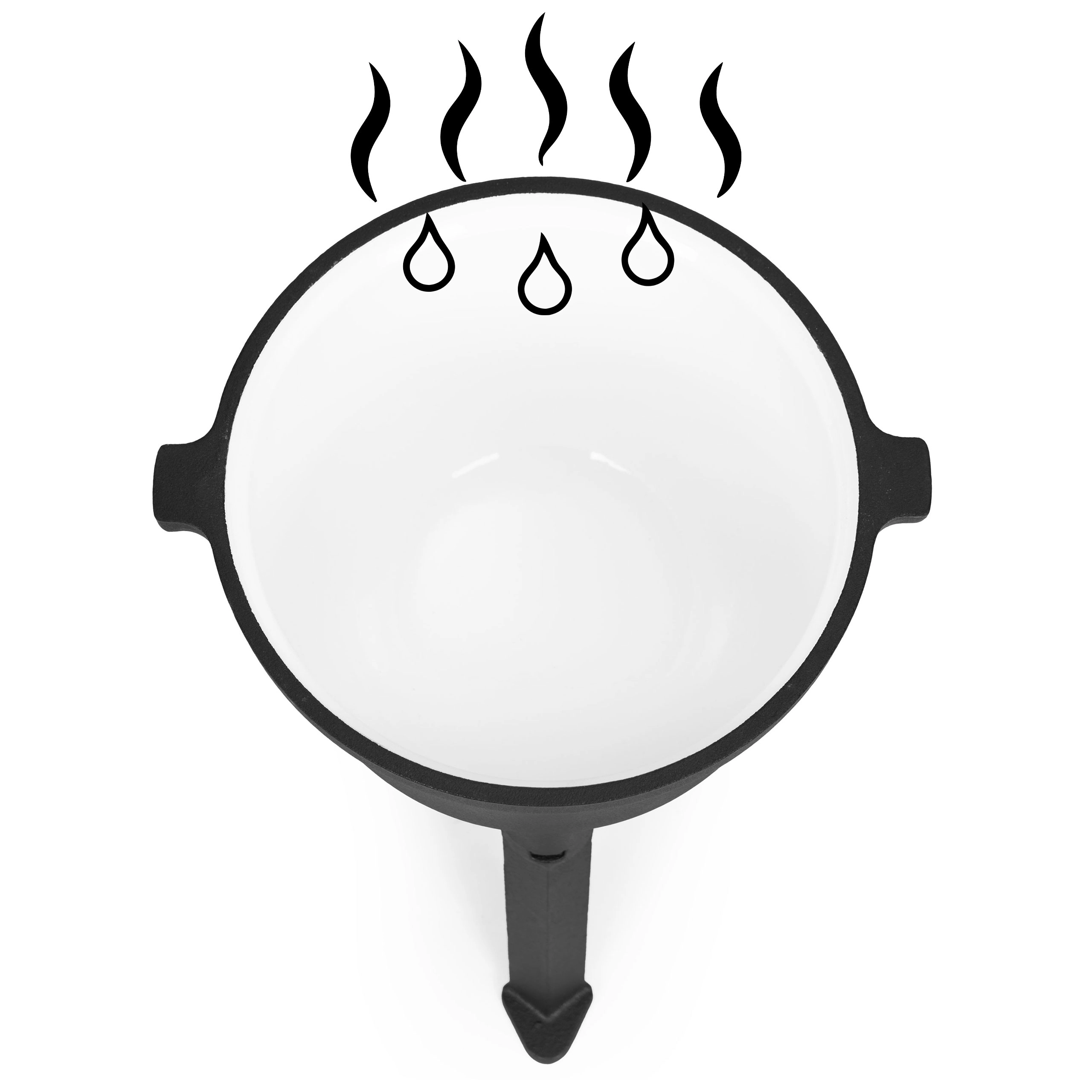 Trinožno ogrodje in robustno litoželezo omogočata varno kuhanje neposredno na kurišču. Odlično za golaž, juhe in dušene specialitete.