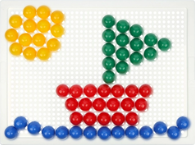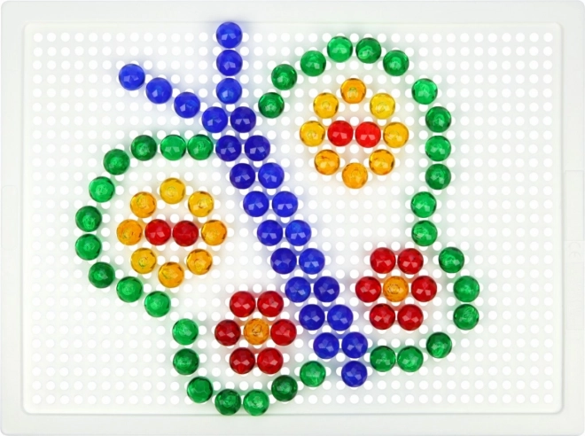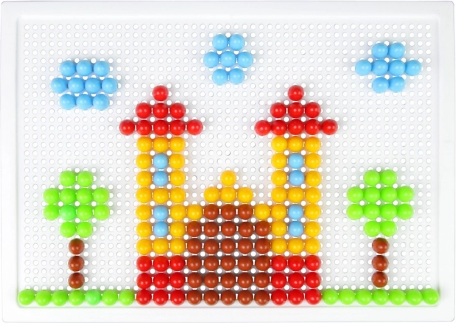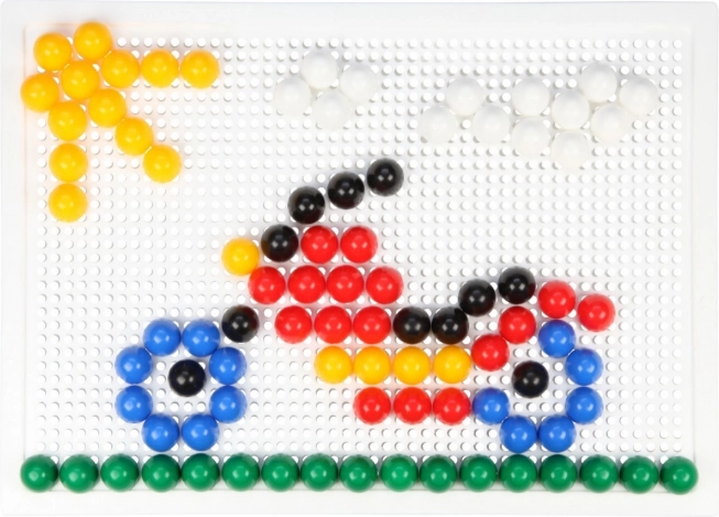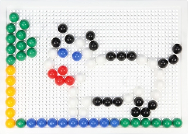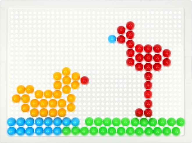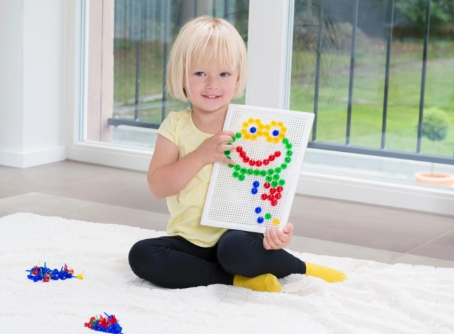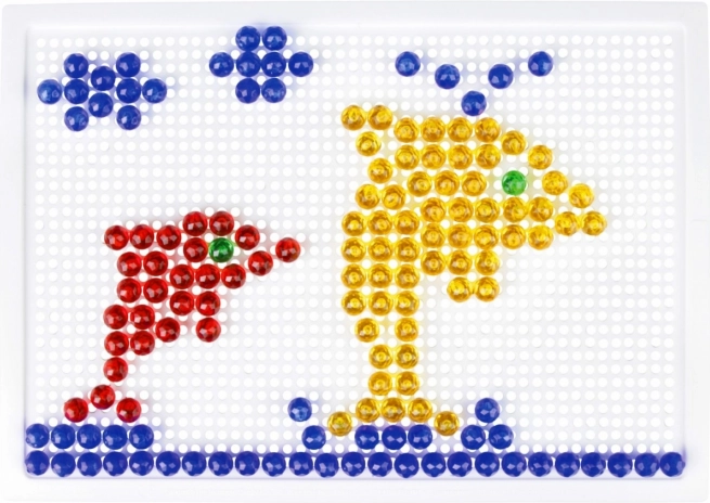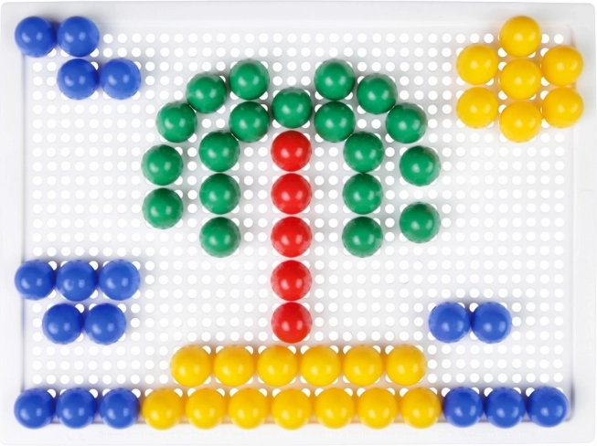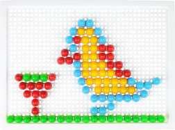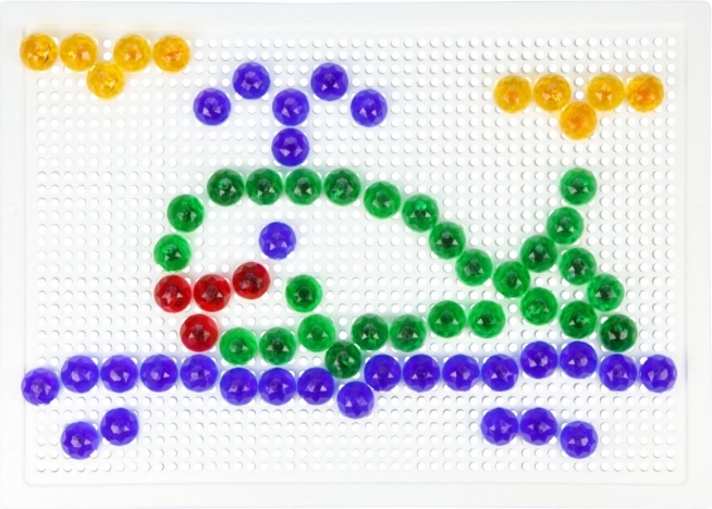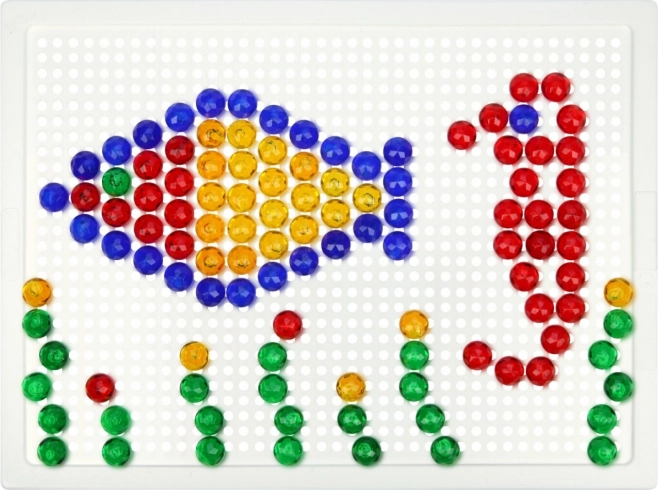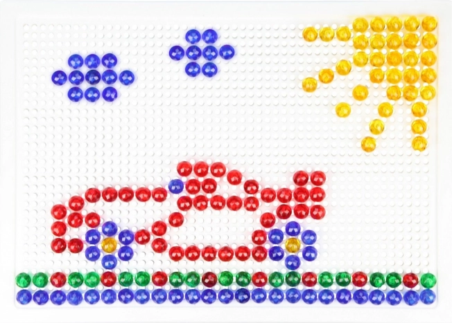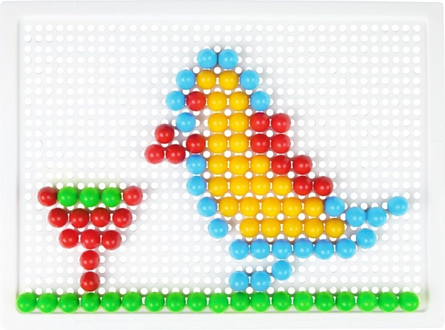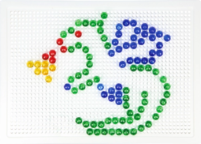 Vsebina: plastična mreža 21 × 16 cm in 100 žebljičkov s premerom 10 mm v živih barvah. Set je pakiran v kartonski embalaži in je primeren za otroke od 3. leta dalje. Predloge niso priložene – prostor za domišljijo je tako neomejen.