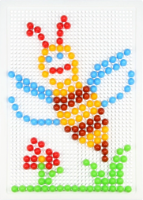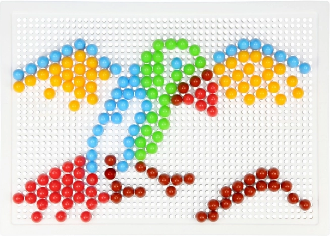 Žebljički s premerom 10 mm v živih barvah odlično držijo v trdni plastični podlagi 21 × 16 cm za udobno ustvarjanje.