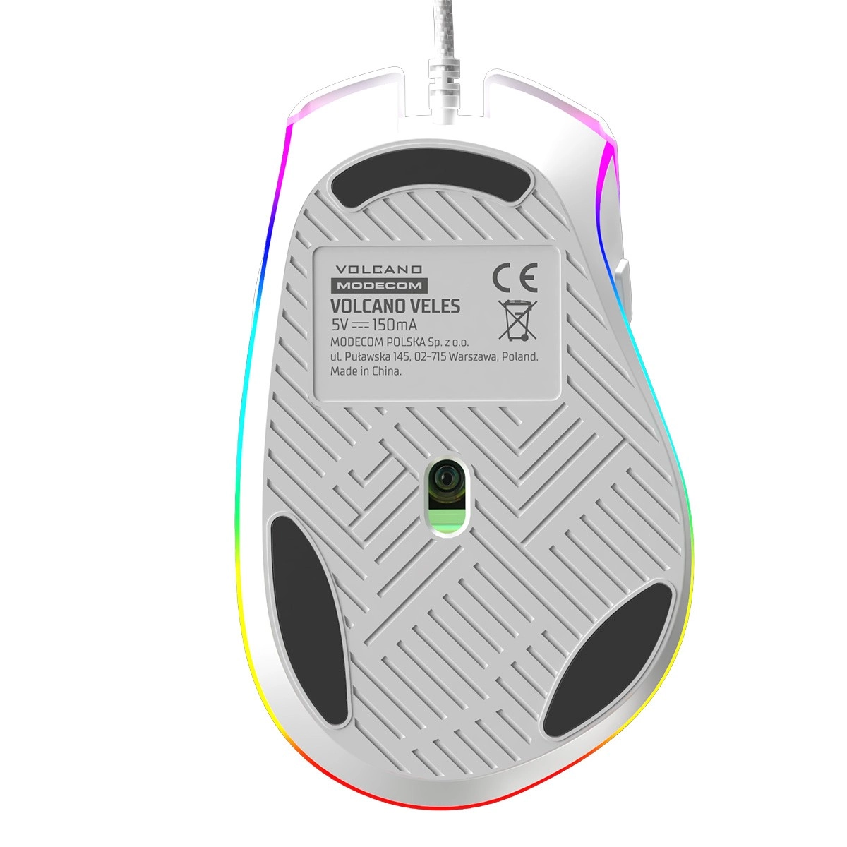 Volcano Veles je zasnovana za igralce, ki želijo udobje, zanesljivost in slog. Ergonomsko ohišje za desničarje, teksturirani boki in uravnotežena masa 102 g zagotavljajo zanesljiv oprijem in udobje tudi med dolgimi igralnimi seansami. RGB LED osvetlitev s 16,7 mio. barv doda postavitvi edinstven videz.