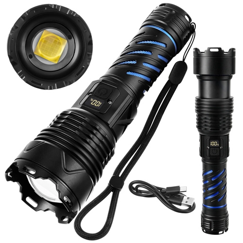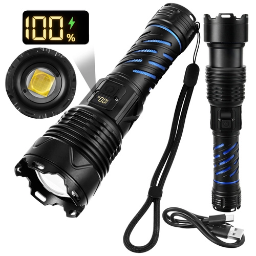 Ta robustna taktična LED svetilka nudi svetlobni tok 1500 lumnov in doseg do 500 m, zato zanesljivo osvetli pot, dvorišče in oddaljene predmete. Zahvaljujoč zoomu zlahka preklapljate med širokim snopom in ozkim, osredotočenim žarkom. Napajanje zagotavlja akumulator 26650 5000 mAh z do 8 ur delovanja (odvisno od načina), ki ga priročno napolnite prek USB‑C.