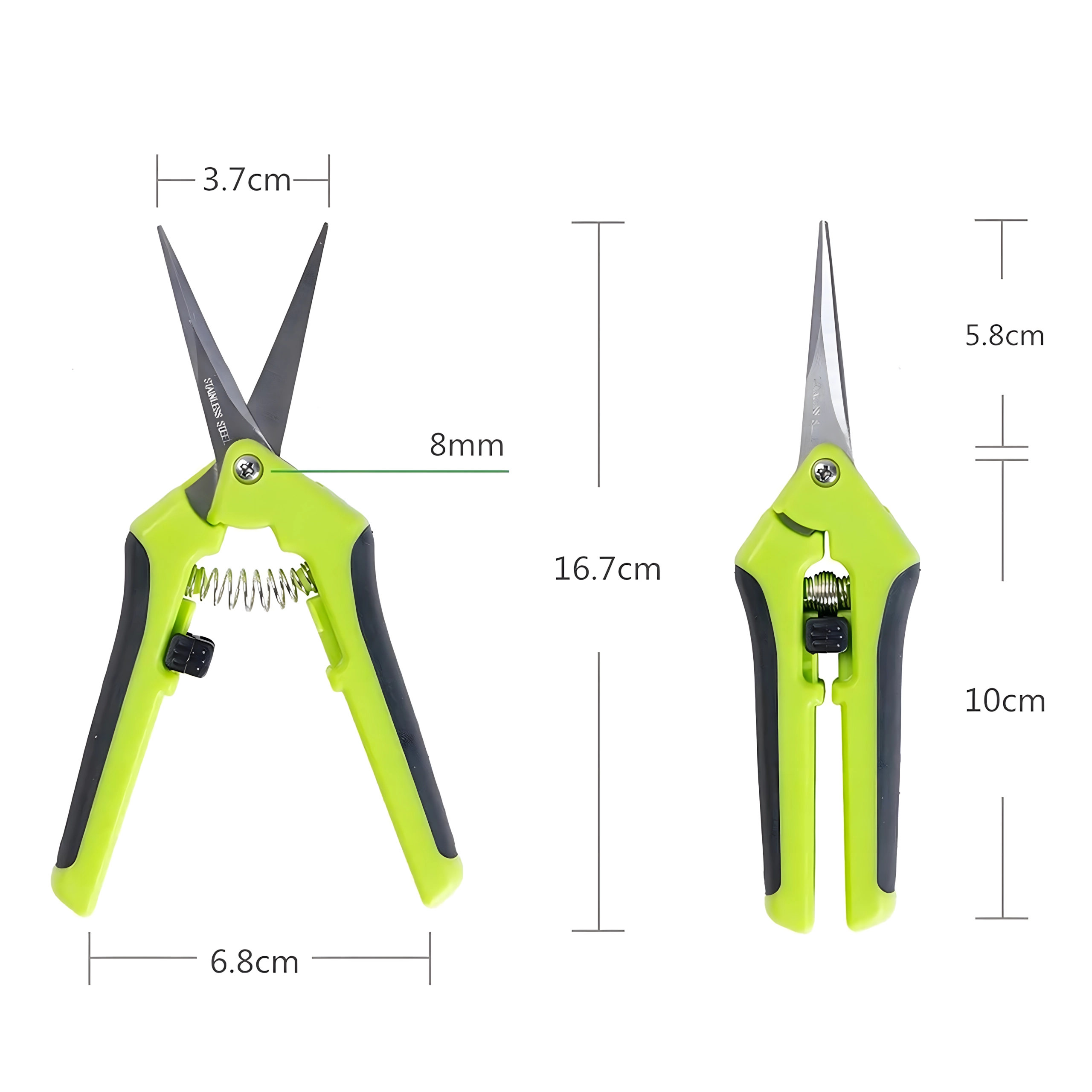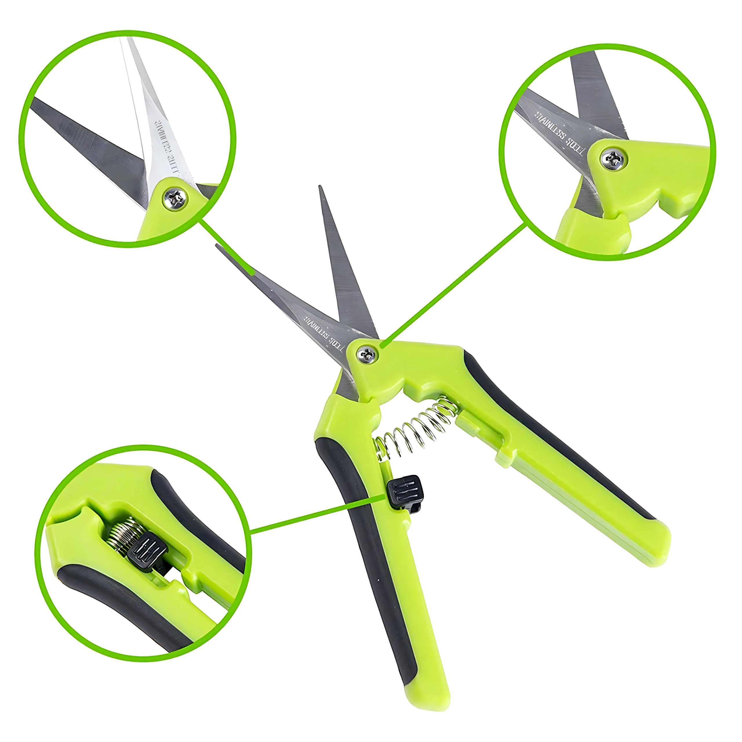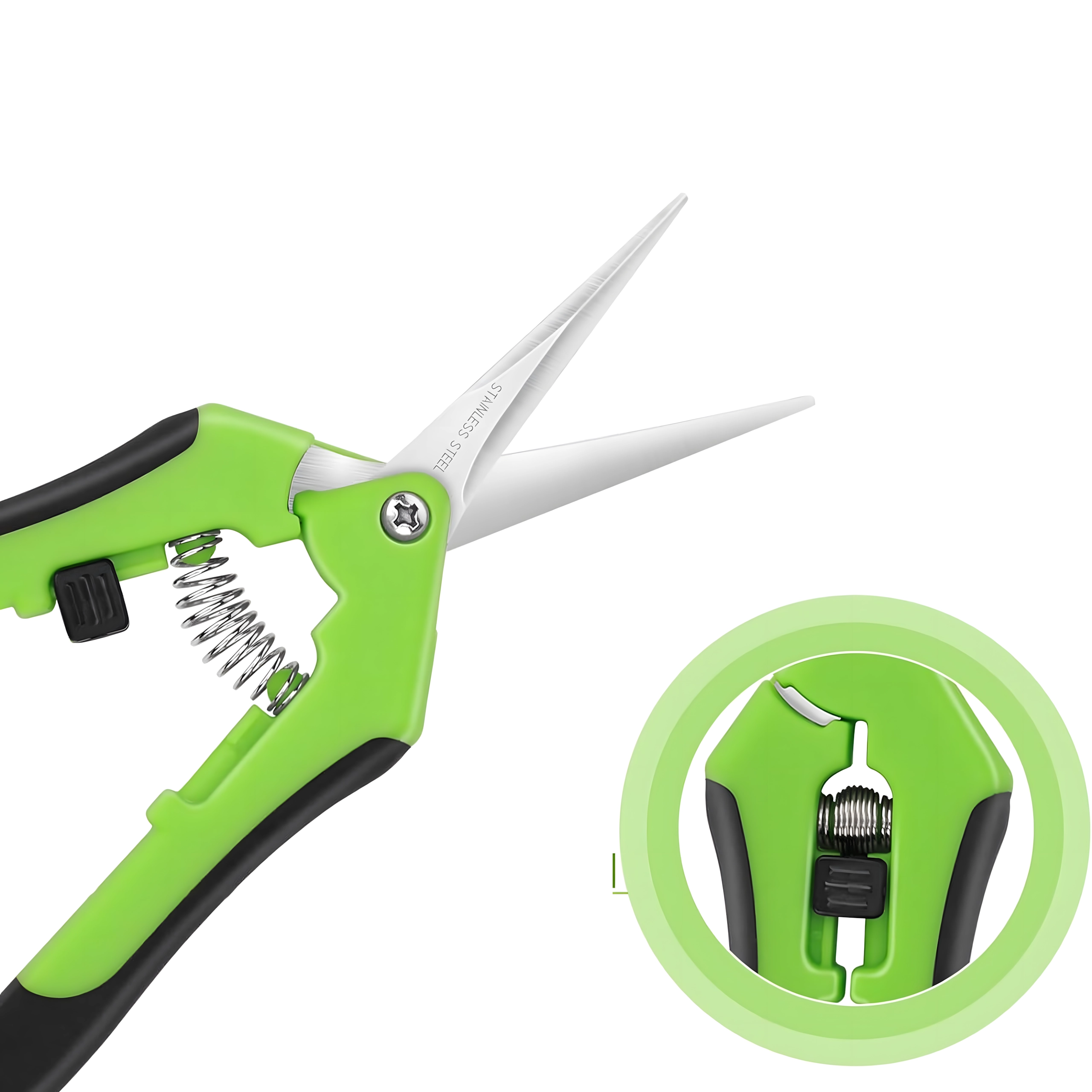 Dolge, ozke in koničaste rezila iz nerjavnega jekla zagotavljajo čiste reze brez stiskanja stebel – idealno za podrobno oblikovanje in pinciranje.