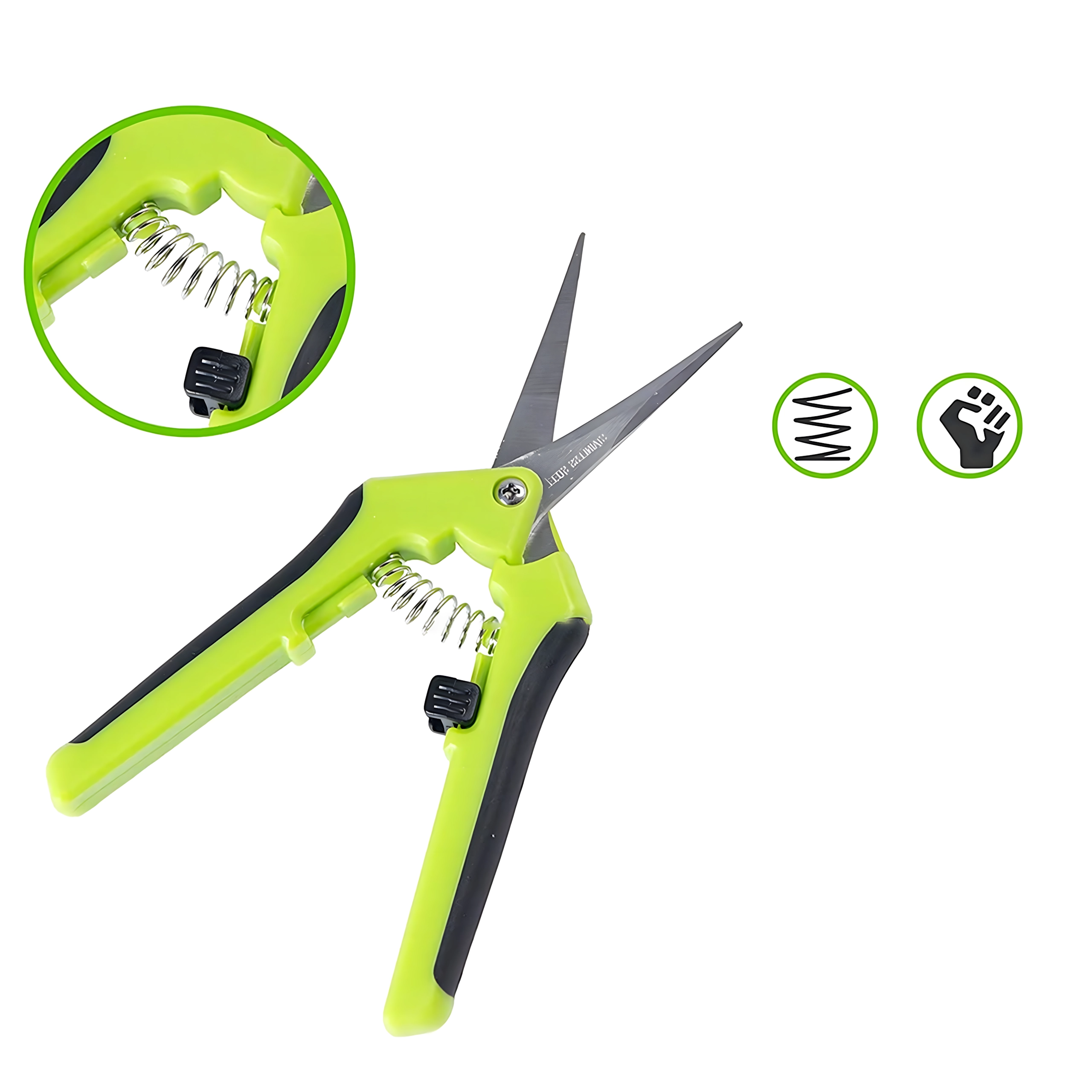Močna spiralna vzmet samodejno odpre rezila po vsakem rezu, zato lahko hitro, ponavljajoče in udobno režete s pomočjo ene roke.