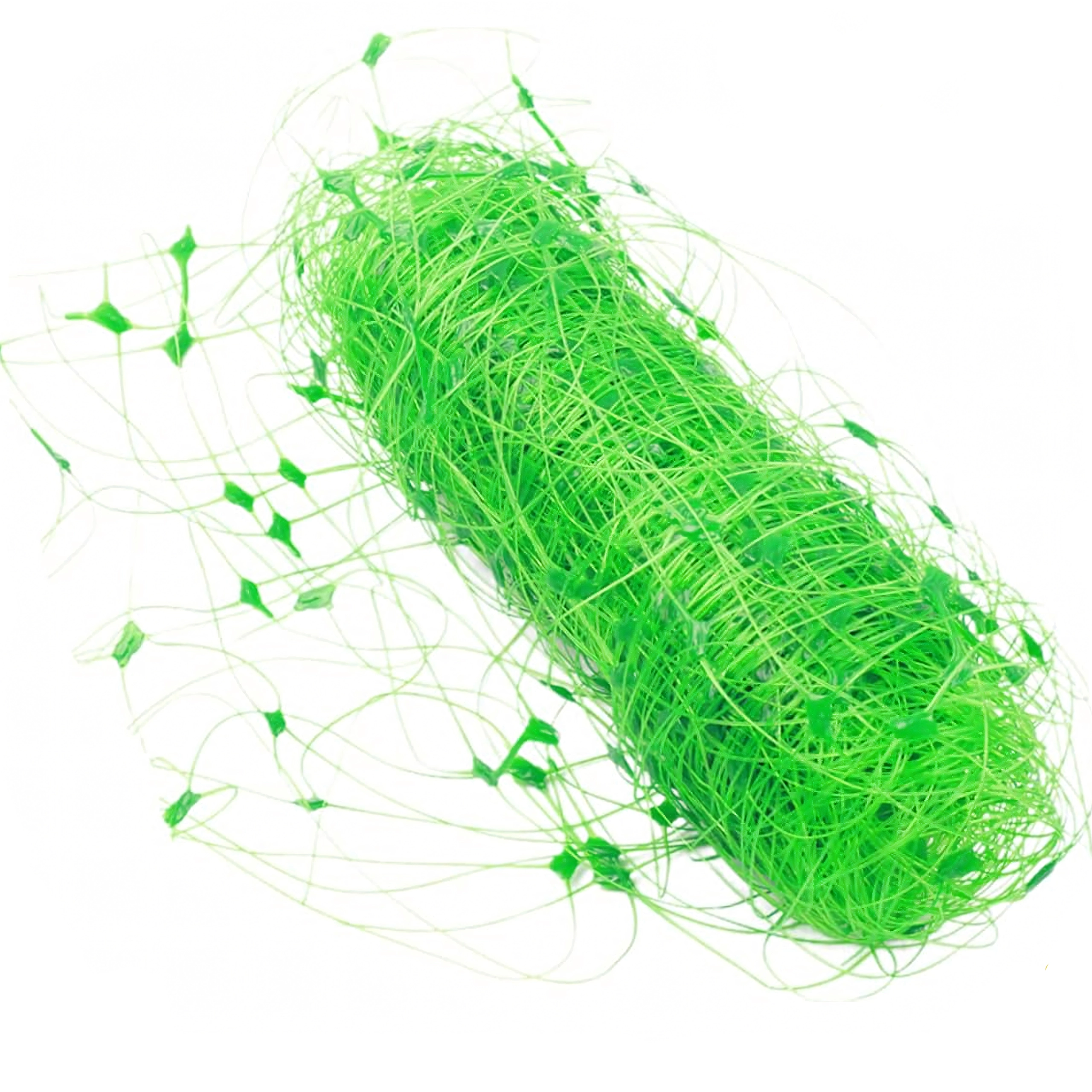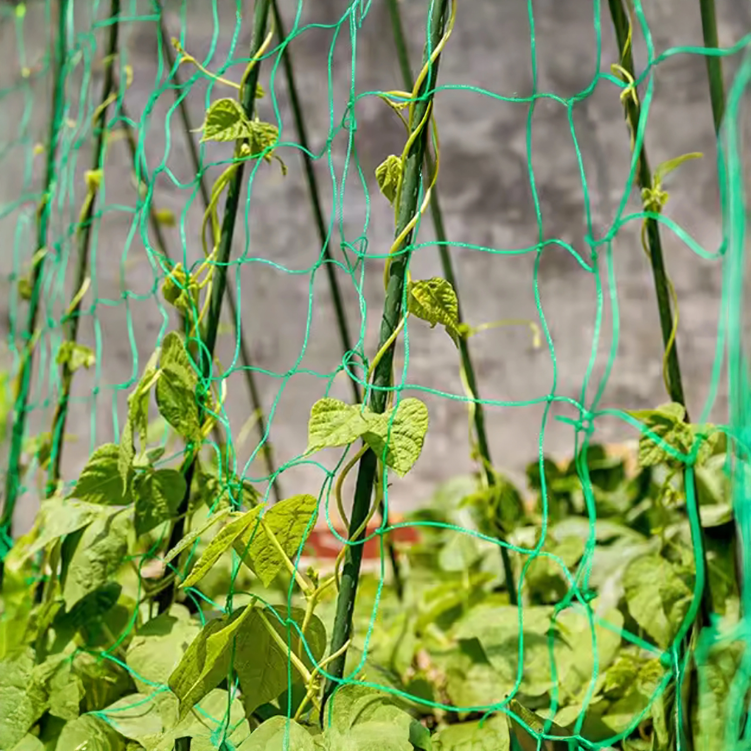 Namestitev je preprosta – mrežo lahko poljubno skrajšate, pritrdite na opore ali konstrukcijo v rastlinjaku in nanjo postopoma privežete poganjke. Idealna je za kumare, fižol, grah, paradižnik ter okrasne plezalke. Gosta mrežna struktura nudi veliko oprijemnih točk za naravno ovijanje stebel.