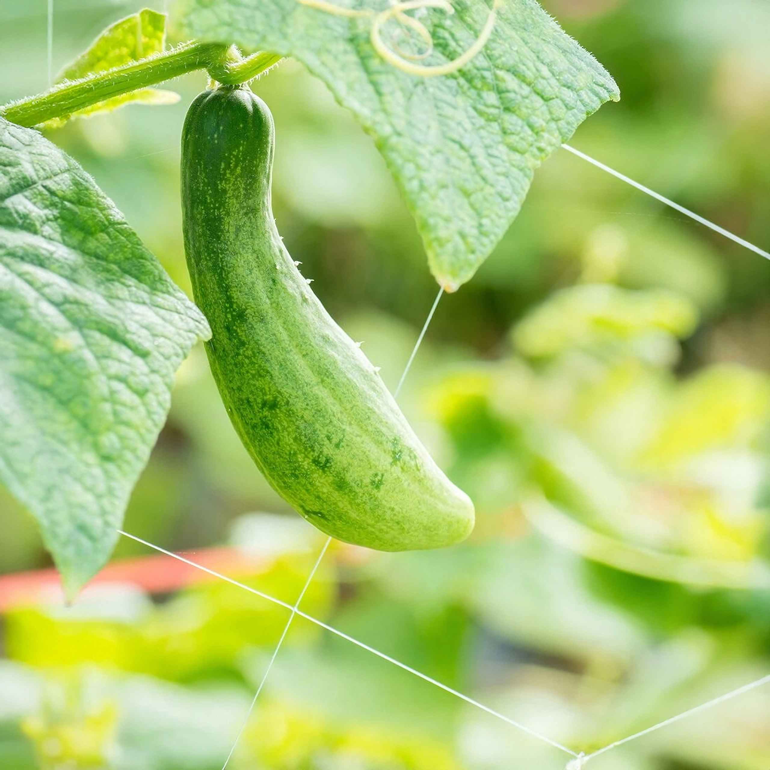 Mreža ohranja kumare, paradižnik in fižol v pokončnem položaju, izboljša kroženje zraka in dostop svetlobe, kar spodbuja zdravo rast in večji pridelek.