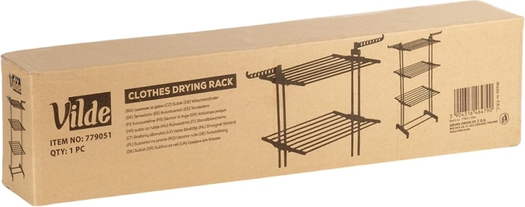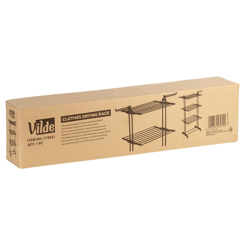 Maksimizirajte prostor pri sušenju perila z vertikalnim stojalom VILDE. Tri ravni, šest neodvisno zložljivih kril in dve ročaji za obešalnike omogočajo prilagoditev sušenja tako majhnih kot velikih količin perila. Stabilna kovinska konstrukcija s prašnim lakom izstopa po odpornosti na vlago in dolgi življenjski dobi.