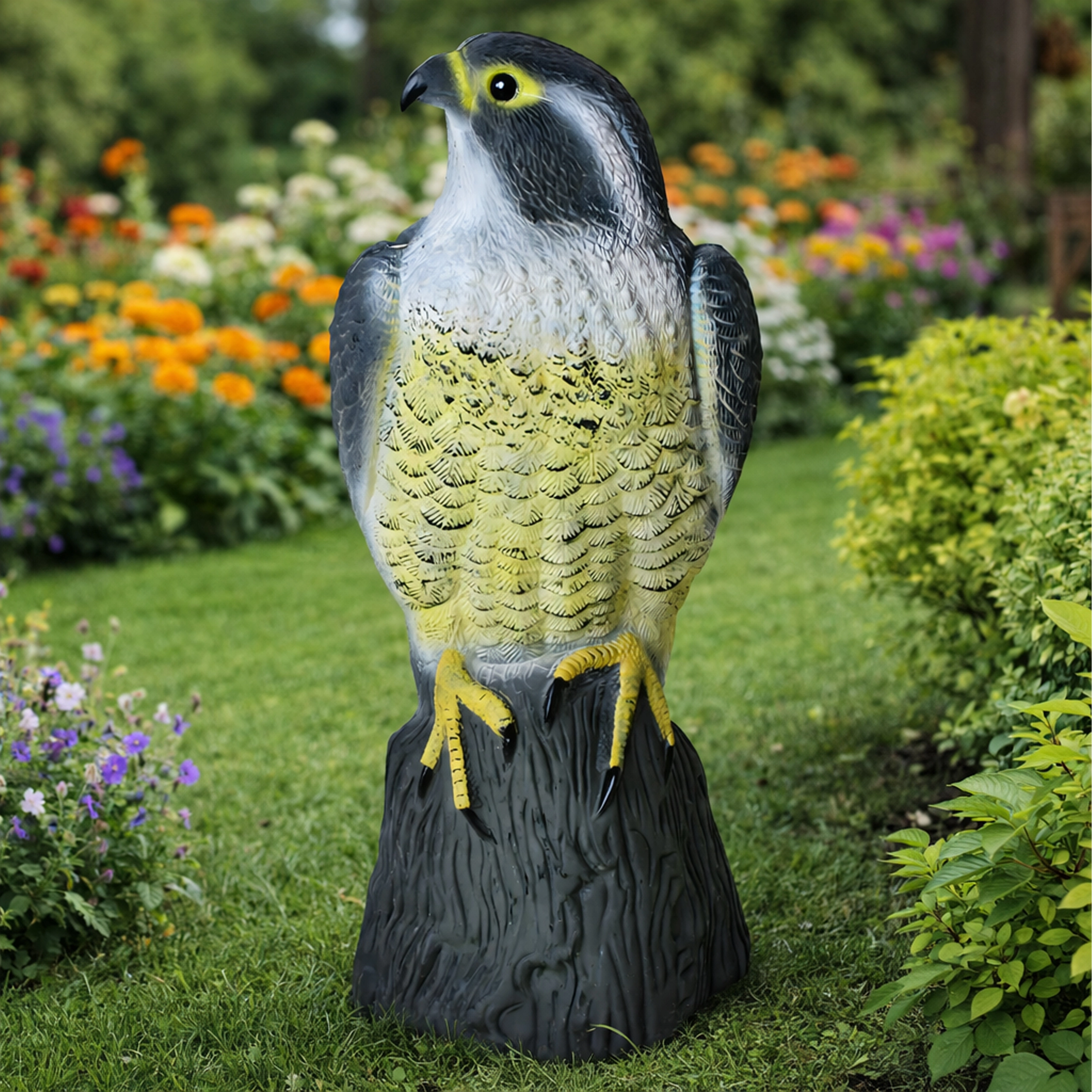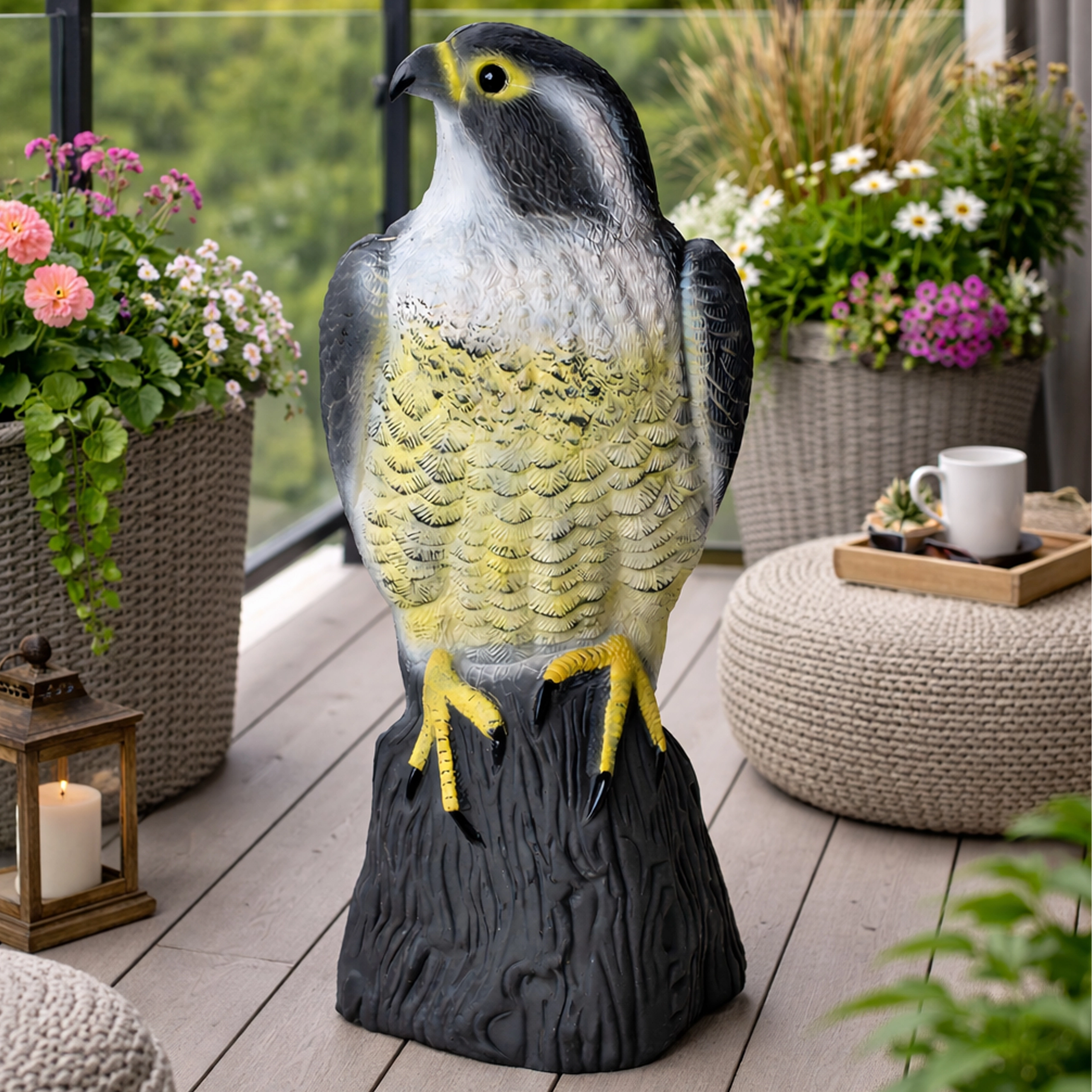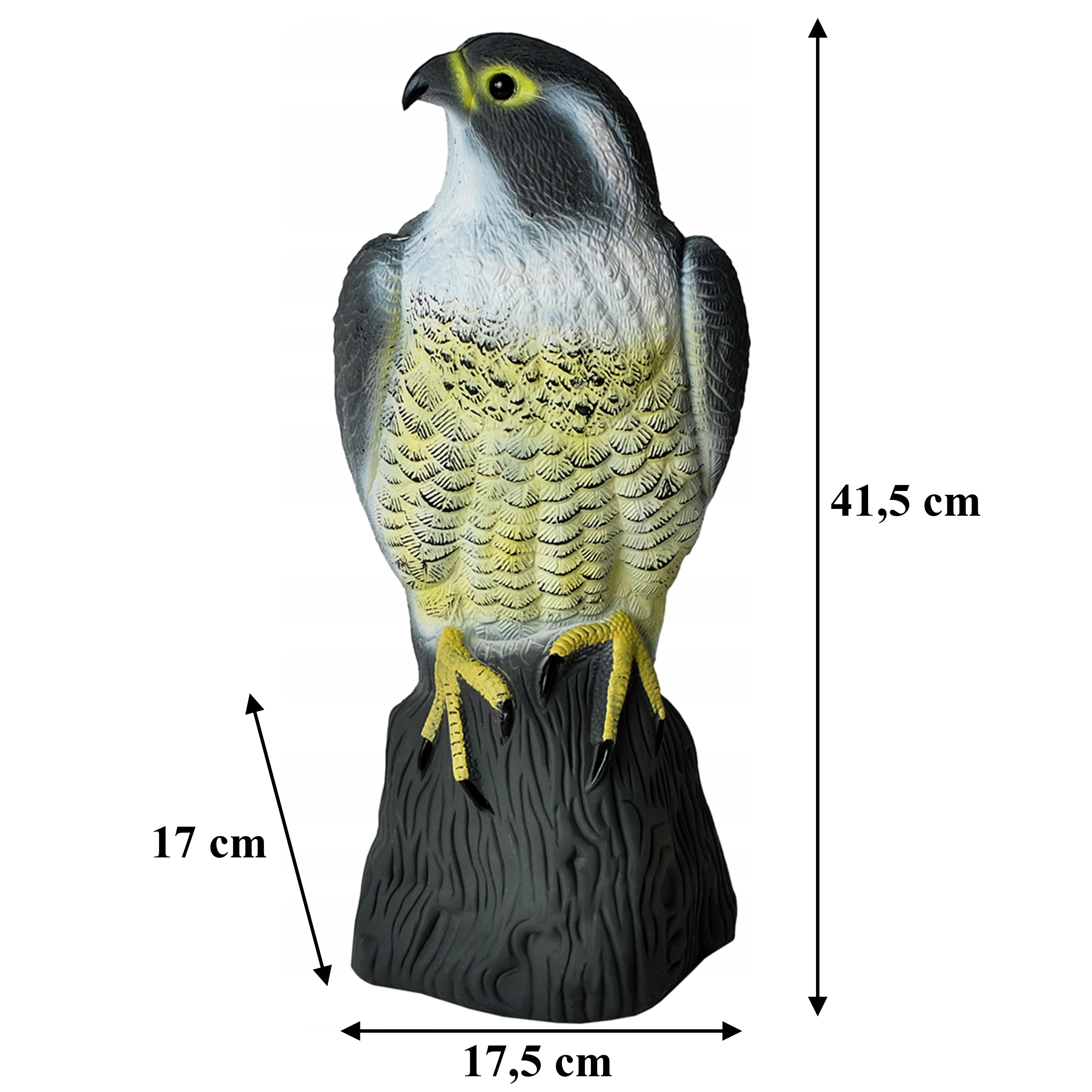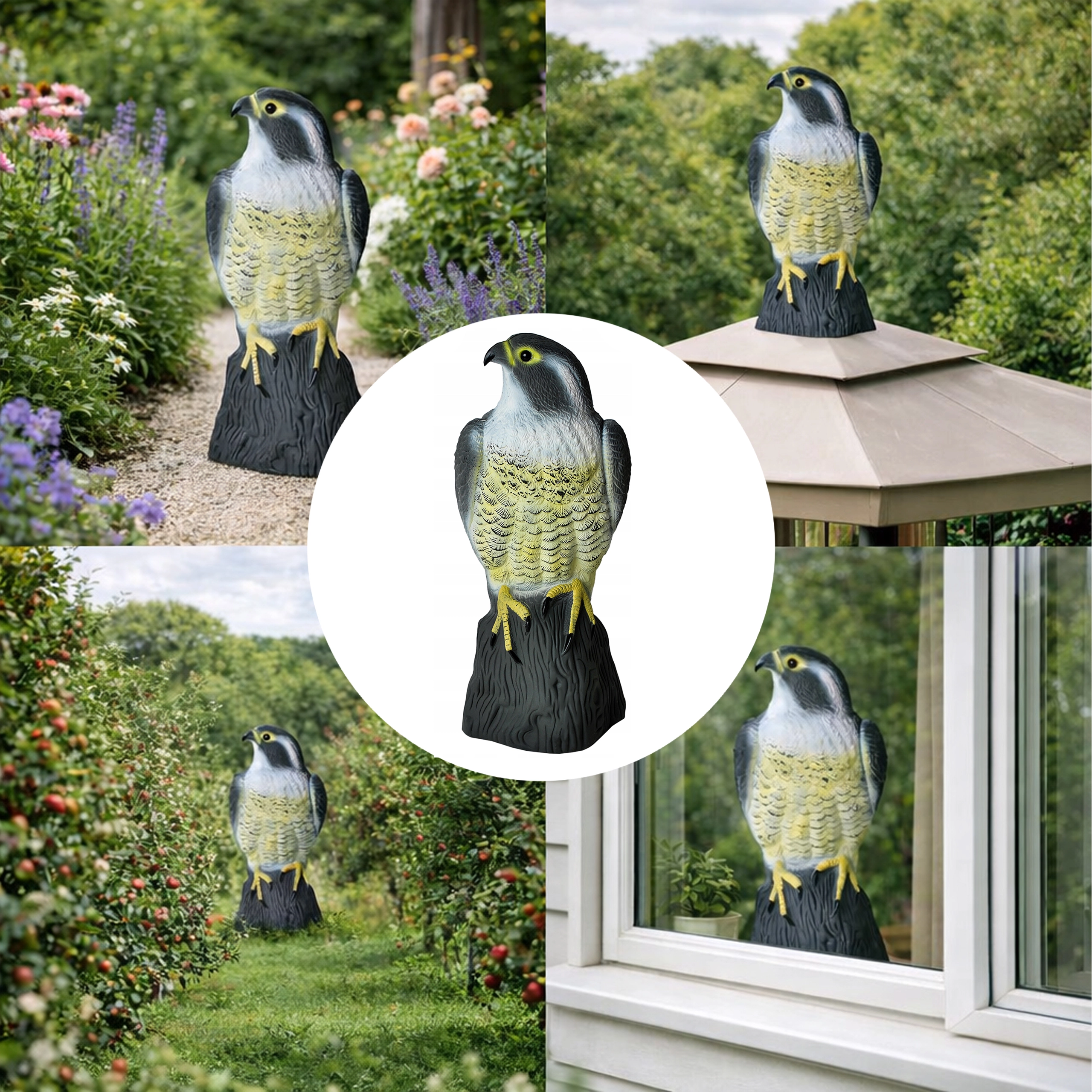 Realistični model sokola učinkovito odganja golobe, škorce in drobne ptice z balkonov, vrtov, sadovnjakov in teras. Zaradi verodostojnih barv in podrobne izdelave deluje grozeče in naravno, zato ptice odvrača od pristajanja in uničevanja pridelka. Izdelan je iz odporne plastike, odporne na vremenske vplive, ima stabilno osnovo in se enostavno namesti brez orodja. Odličen kot ekološka in tiha zaščita brez kemikalij.