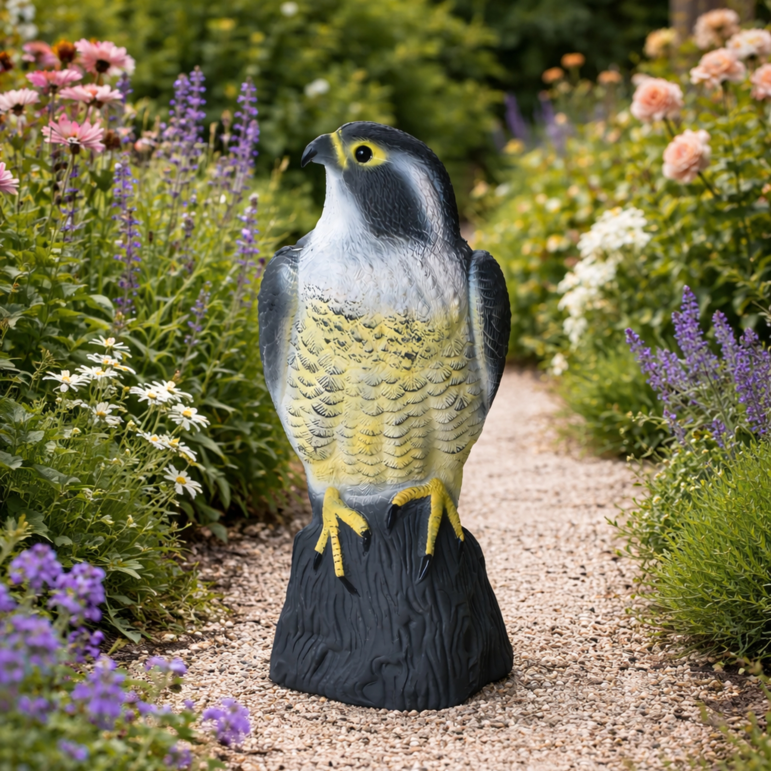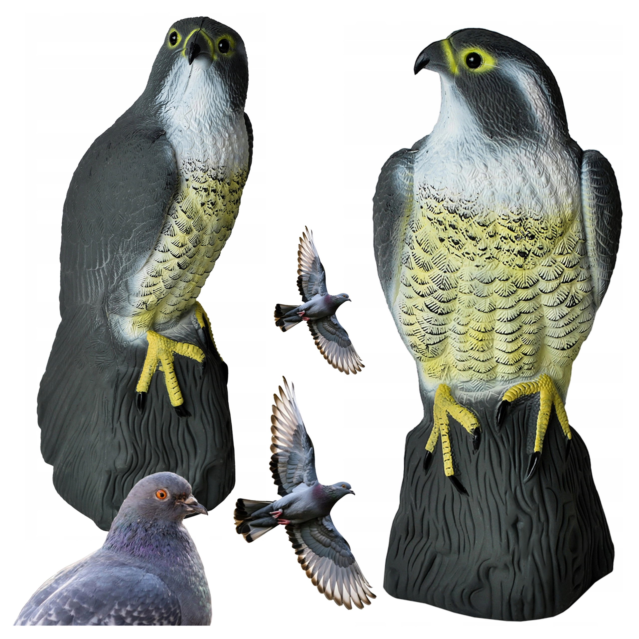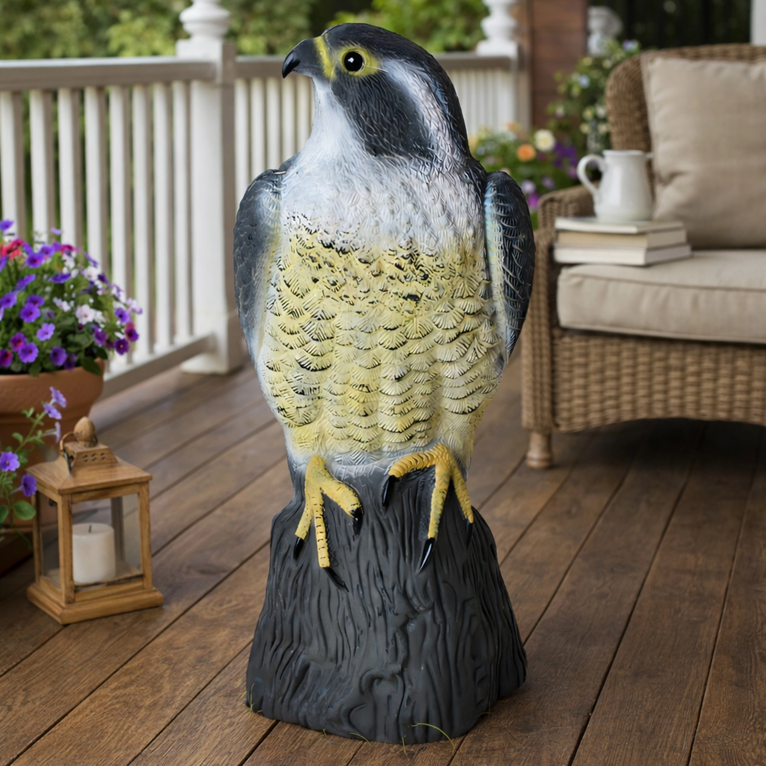 Realistični model sokola učinkovito odganja golobe, škorce in drobne ptice z balkonov, vrtov, sadovnjakov in teras. Zaradi verodostojnih barv in podrobne izdelave deluje grozeče in naravno, zato ptice odvrača od pristajanja in uničevanja pridelka. Izdelan je iz odporne plastike, odporne na vremenske vplive, ima stabilno osnovo in se enostavno namesti brez orodja. Odličen kot ekološka in tiha zaščita brez kemikalij.