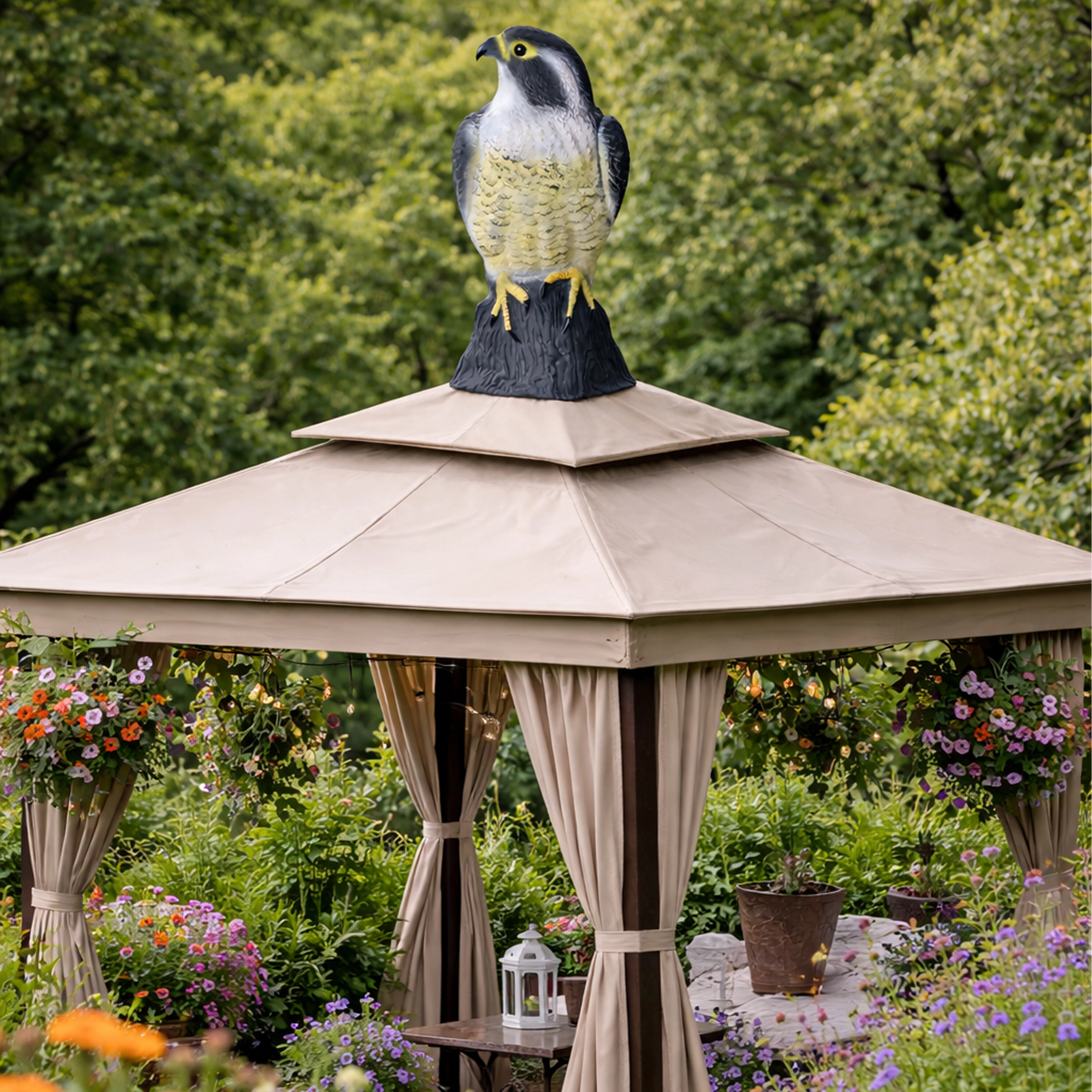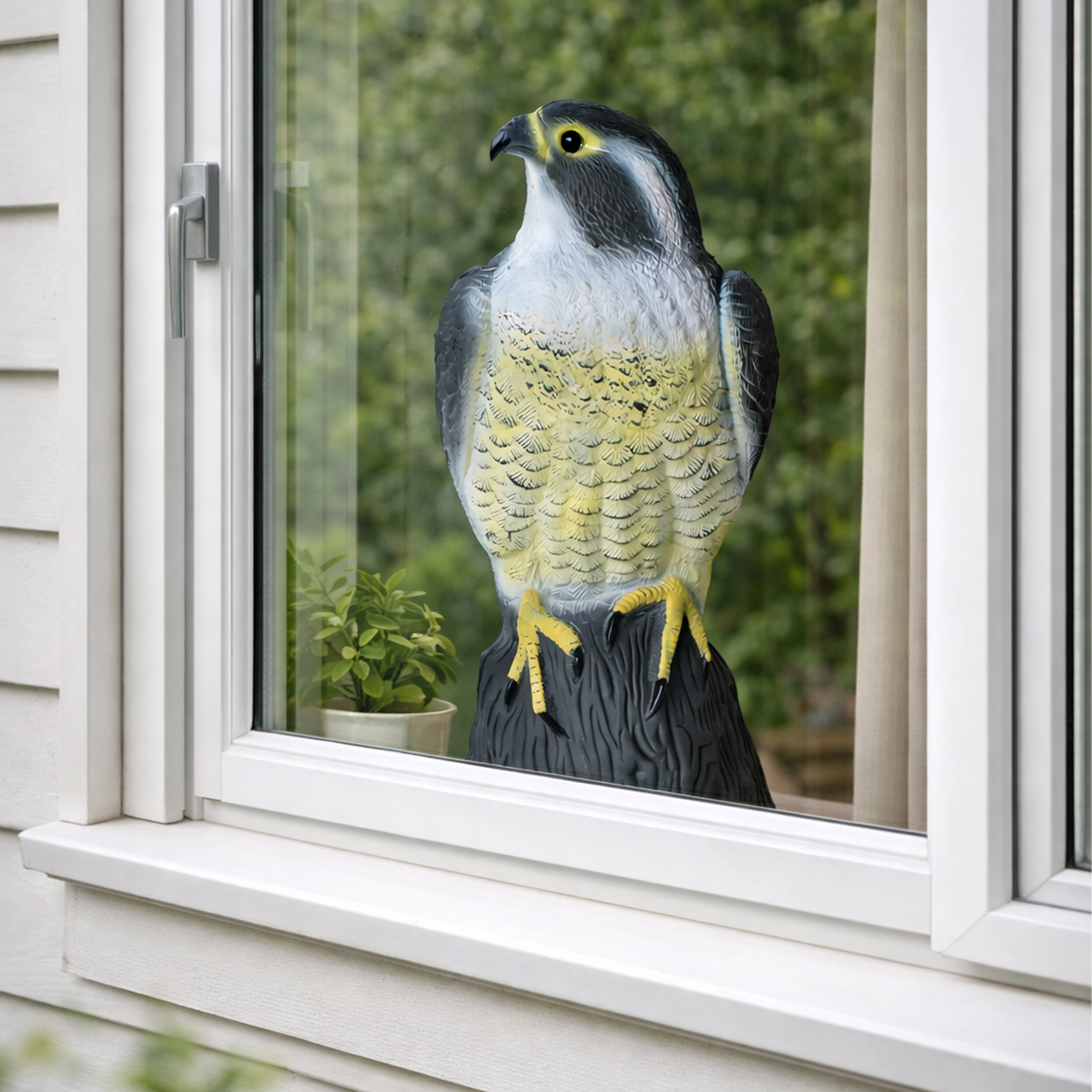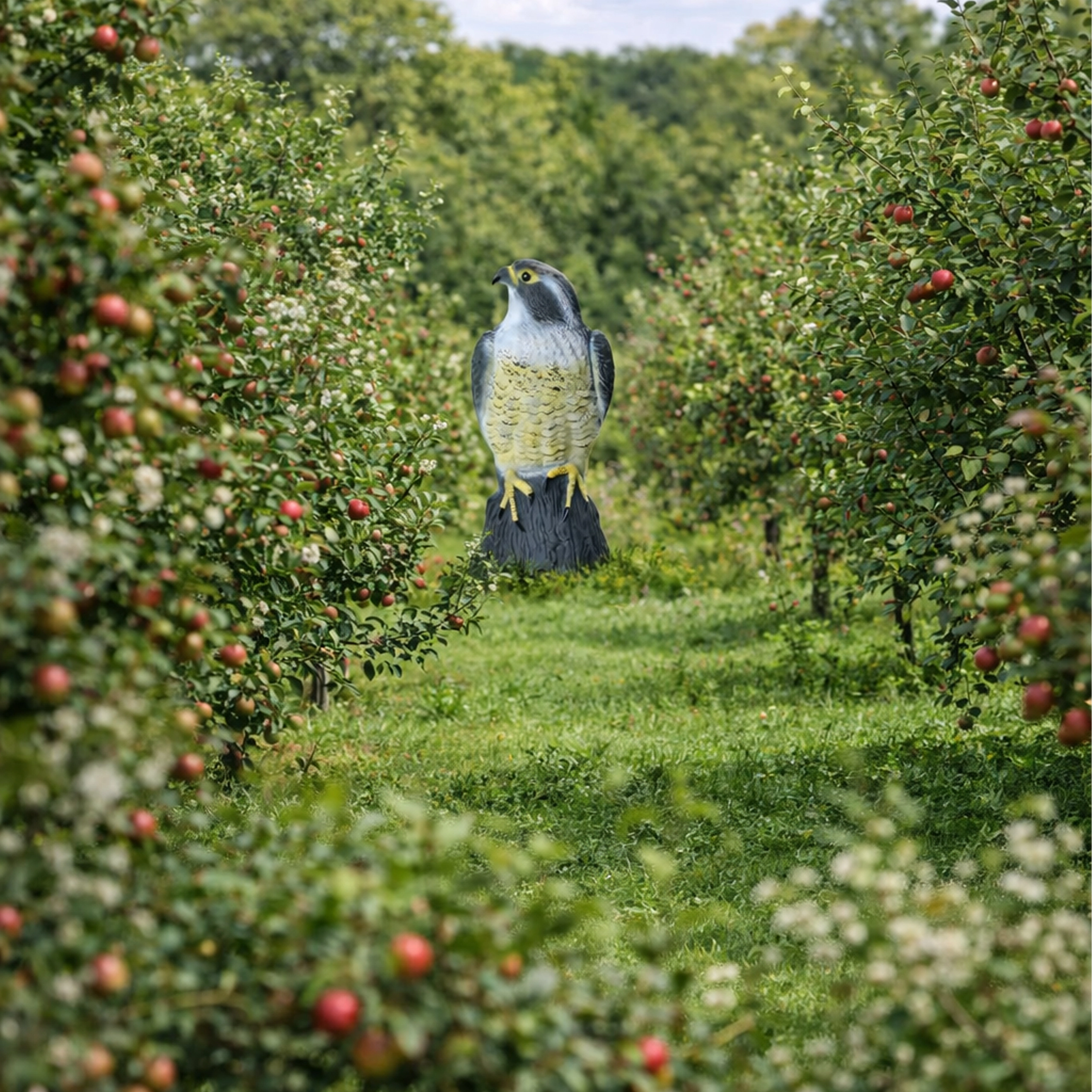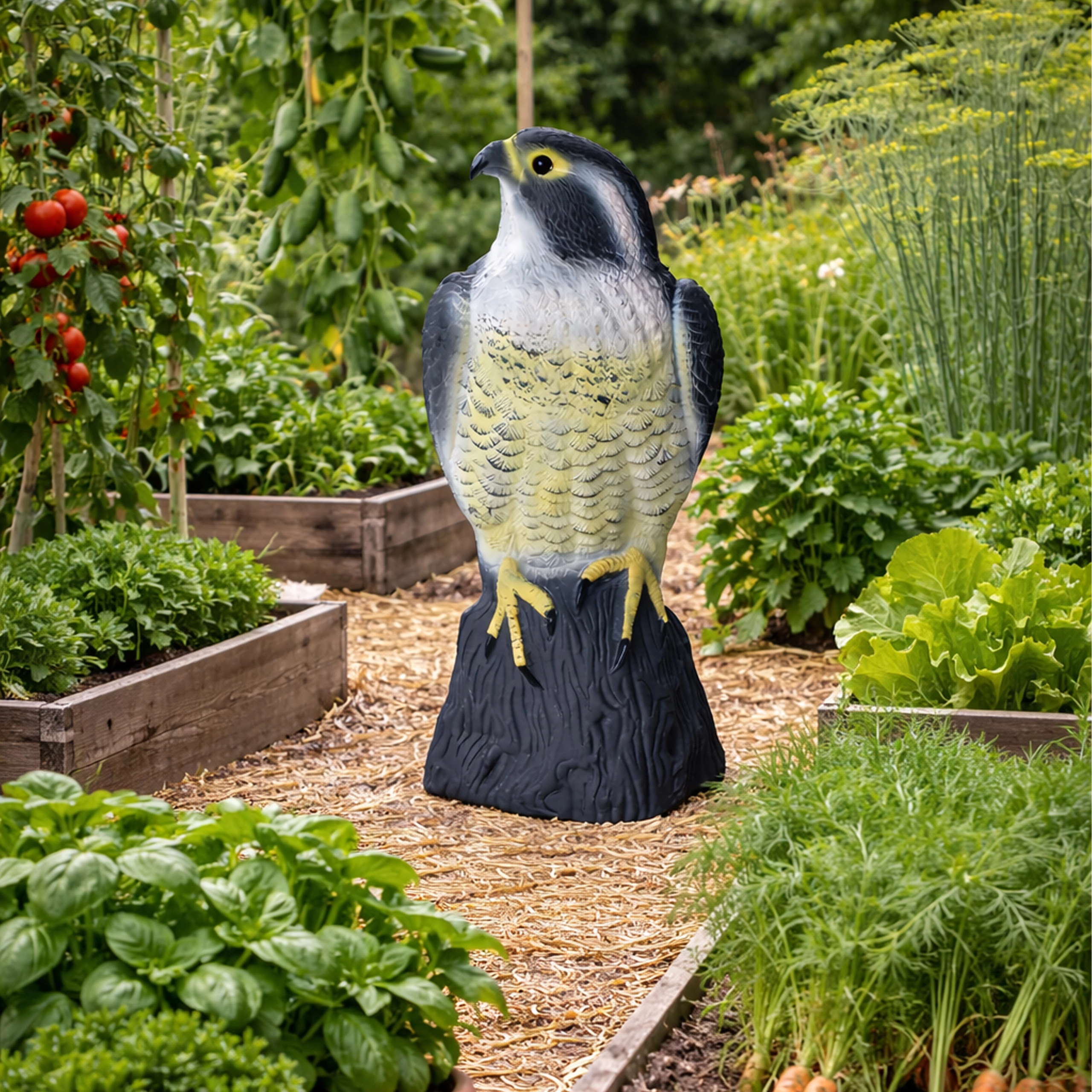 Realistični model sokola učinkovito odganja golobe, škorce in drobne ptice z balkonov, vrtov, sadovnjakov in teras. Zaradi verodostojnih barv in podrobne izdelave deluje grozeče in naravno, zato ptice odvrača od pristajanja in uničevanja pridelka. Izdelan je iz odporne plastike, odporne na vremenske vplive, ima stabilno osnovo in se enostavno namesti brez orodja. Odličen kot ekološka in tiha zaščita brez kemikalij.