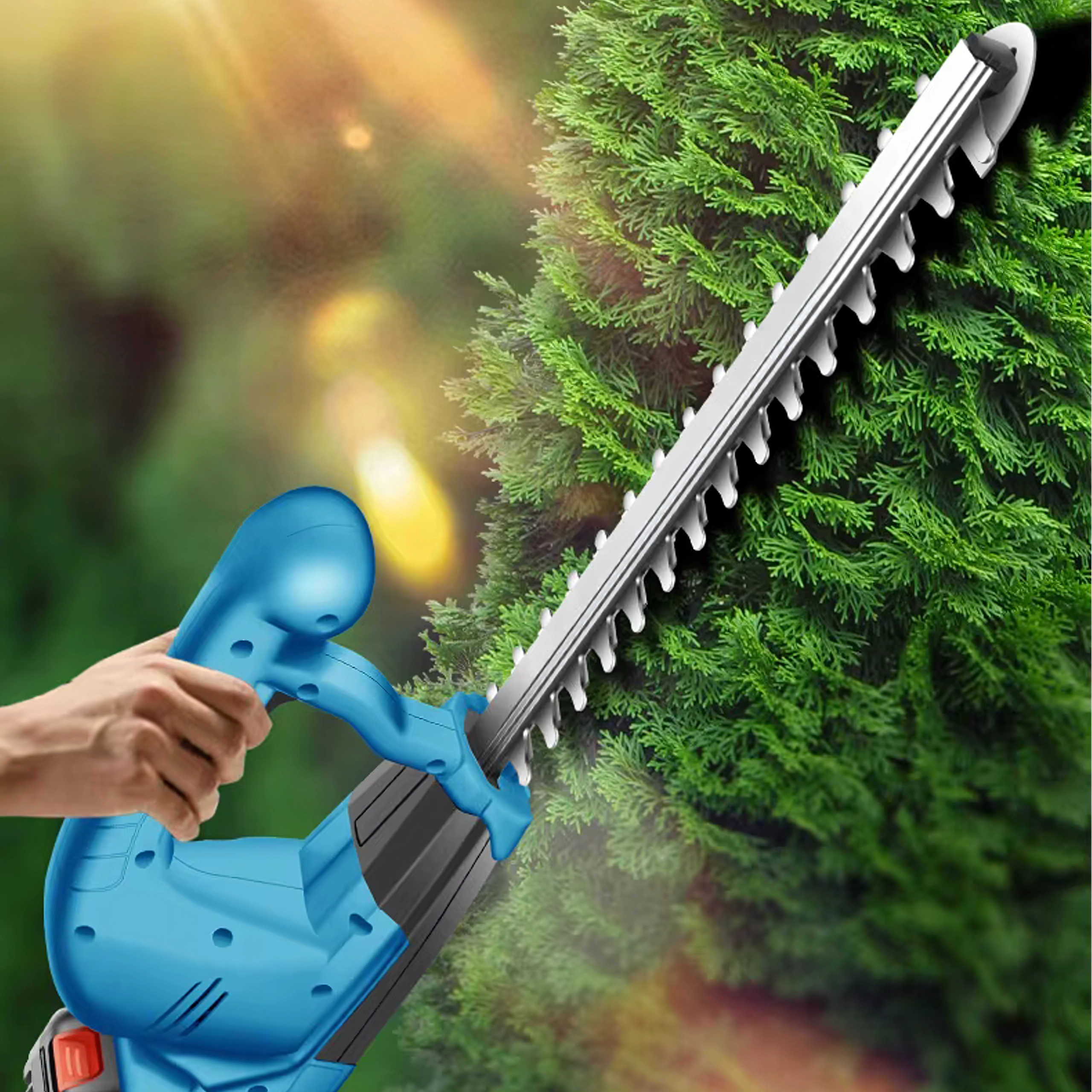 Te akumulatorske škarje za živo mejo so idealne za redno vzdrževanje vrta. Dolga obojestranska letev z ostrimi zobmi zagotavlja čist in enakomeren rez vej in listov, medtem ko ergonomski ročaj ter sprednji ščit povečujeta nadzor in varnost pri delu. Brez kabla imate popolno svobodo gibanja po vsem vrtu.