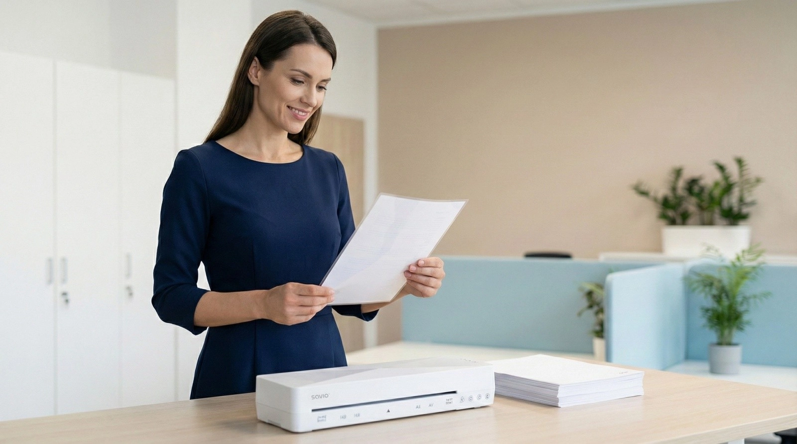 Laminiranje lista A4 traja manj kot minuto. Vhod širine 230 mm podpira več formatov – idealno za pisarno in dom.