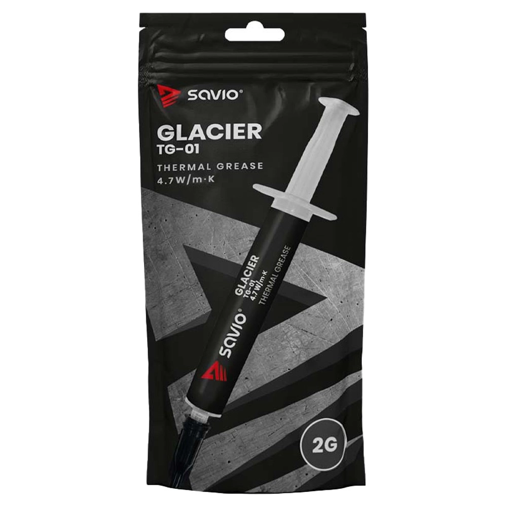 Toplotno prevodna pasta SAVIO TG-01 (2 g) zagotavlja zanesljiv odvod toplote med procesorjem in hladilnikom zahvaljujoč ogljikovim mikrodrobcem. Je neprevodna, varna za elektroniko, enostavna za uporabo in primerna za ponovno uporabo zaradi praktične brizge.