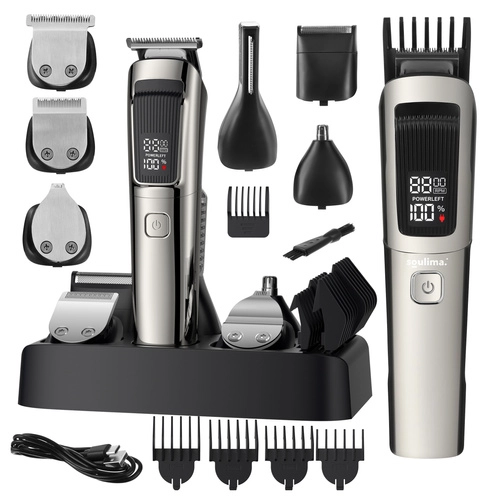 Univerzalni prirezovalnik in brivnik SOULIMA združuje nego las, brade in telesa v eni napravi. Zahvaljujoč zamenljivim glavami in nastavkom zlahka uredite striženje, konture in gladko britje brez draženja. Digitalni zaslon, polnjenje prek USB‑C, vodoodpornost IPX6 in do 90 minut delovanja ga naredijo idealno izbiro za domači styling in potovanja.