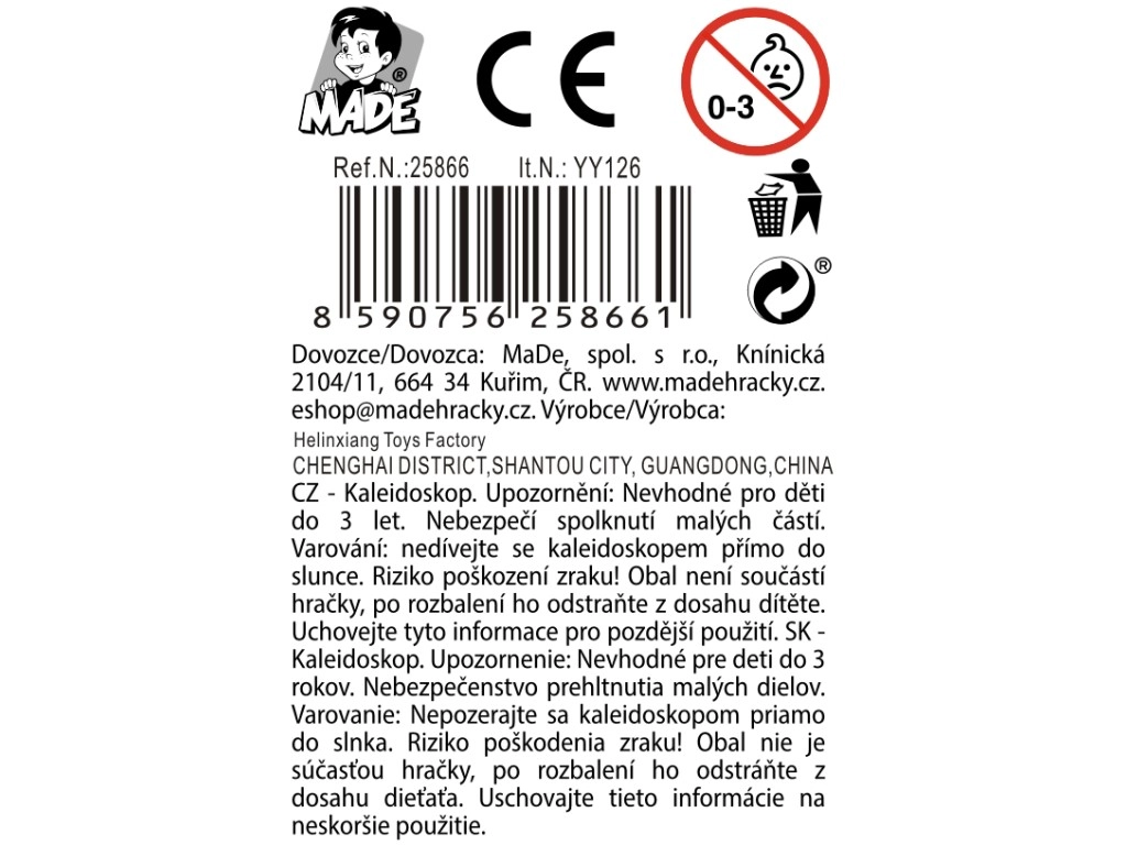 Odkrijte čar barvitih vzorcev s tem plastičnim kalejdoskopom za otroke od 3 let. Ponuja 5 različnih barvnih motivov, ne potrebuje baterij in je pripravljen za takojšnjo zabavo kjer koli. Zaradi kompaktnih mer 4,5 × 4,5 × 19,5 cm se odlično prilega otroškim rokam in je tudi privlačen dodatek v displej škatli za prodajalne.