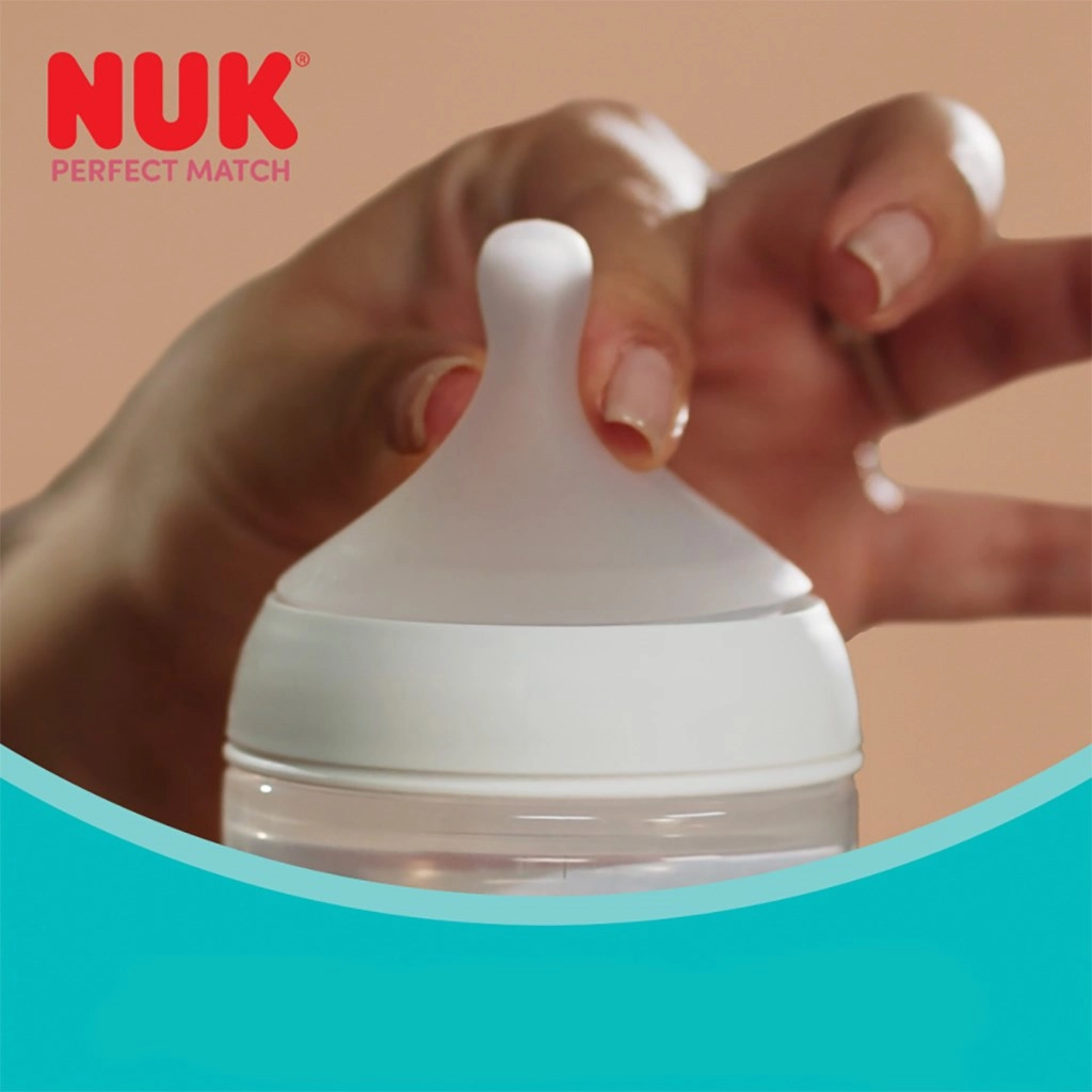 Komplet NUK Perfect Match je zasnovan tako, da kar najbolje upošteva naravne potrebe vašega dojenčka. Izjemno prilagodljiv cuclj se nežno prilega ustnicam in nebu, široka opora posnema stik s kožo in podpira naravno sesanje, kot priporočajo strokovnjaki. Praktični temperaturni indikator na stekleničkah vam pomaga preprosto preveriti primerno temperaturo napitka.
