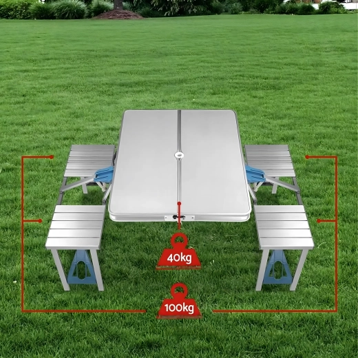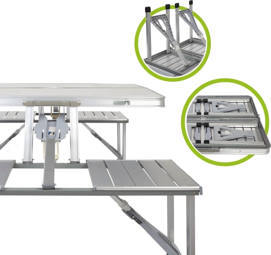 Zložljiva aluminijasta kamping/piknik miza s sedeži