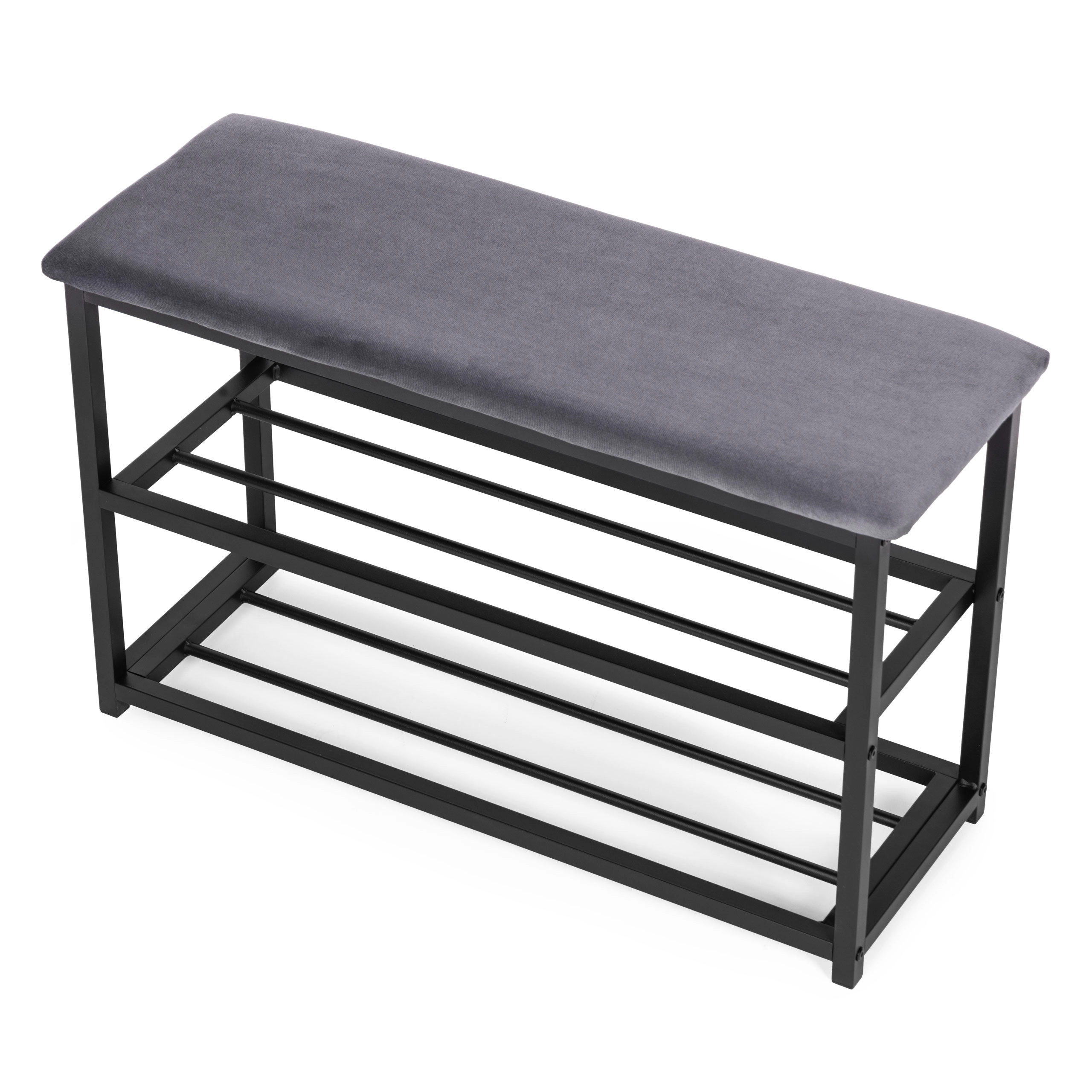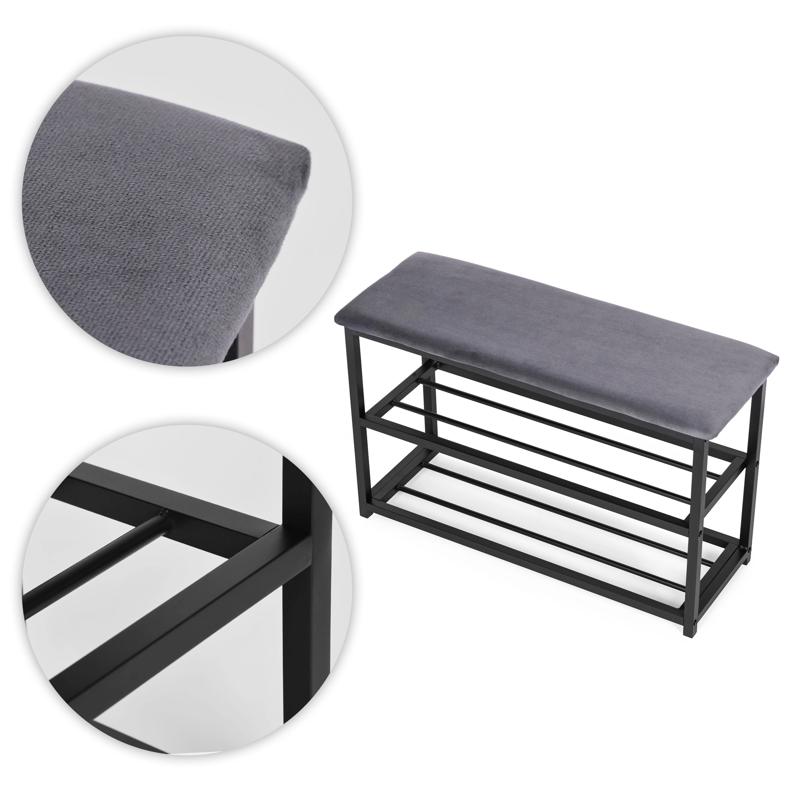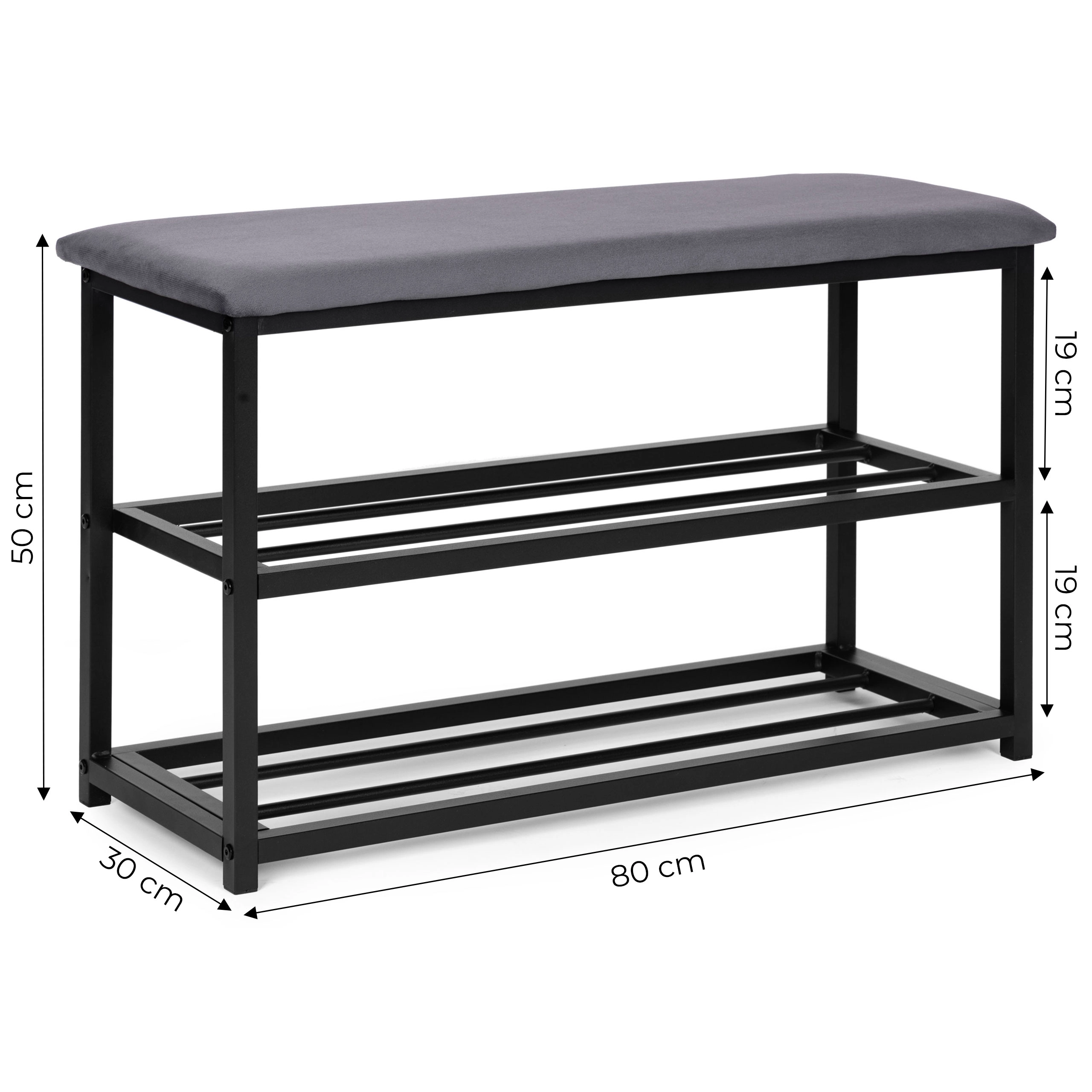 Stilska klop za čevlje ModernHome združuje shranjevanje in udobno sedenje v enem. Z dvema policama sprejme do 8 parov obutve, njen mehak žametni sedež pa olajša obuvanje. Praškasto lakiran jeklen okvir zagotavlja stabilnost in dolgo življenjsko dobo, medtem ko odprte police nudijo preglednost in prezračevanje obutve. Idealna za predsobo, garderobo in garderobne omare.