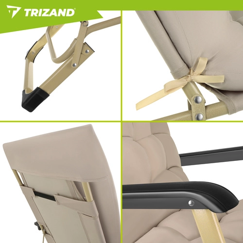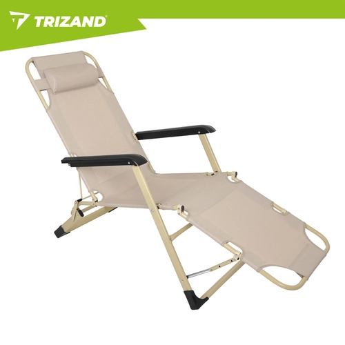 Uživajte v udobju na vrtu, terasi ali plaži z zložljivim ležalnikom TRIZAND 3v1. Ponuja 3 položaje (sedenje, polležeč, ležeč), debel celo-govorni vzglavnik in odstranljiv vzglavnik za glavo. Trpežna tkanina Oxford 600D se enostavno čisti, nedrseče nogice zagotavljajo stabilnost, zložljiva konstrukcija pa olajša prenašanje in shranjevanje.