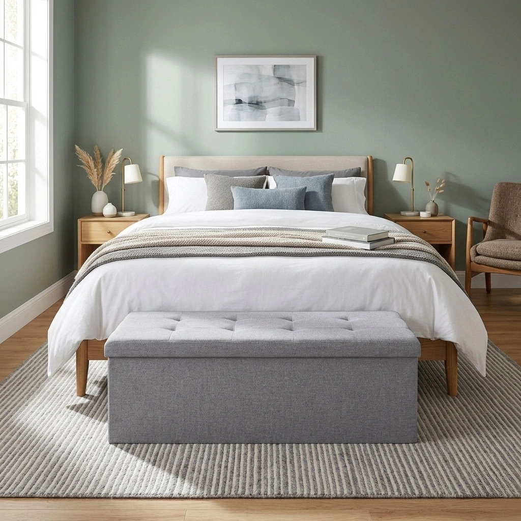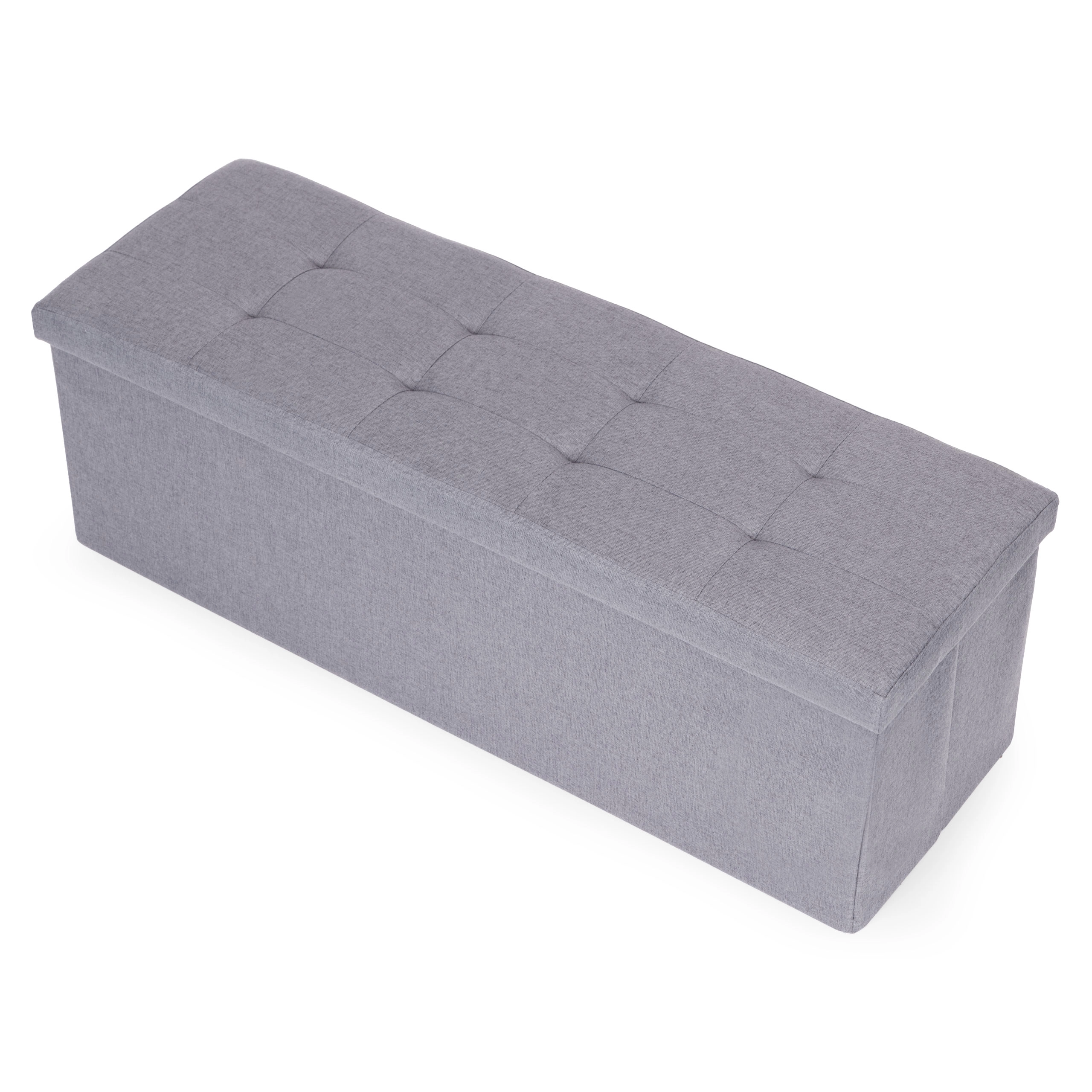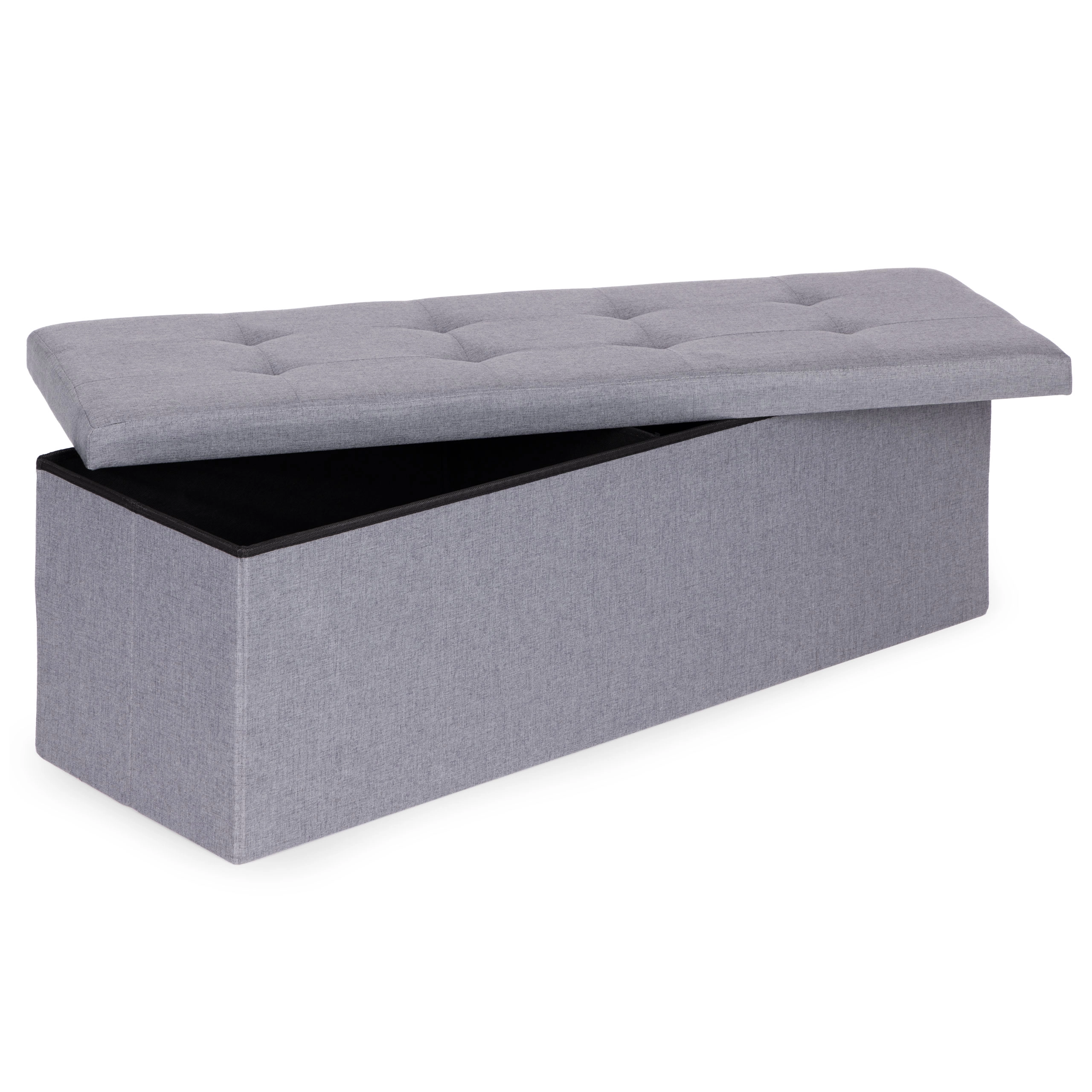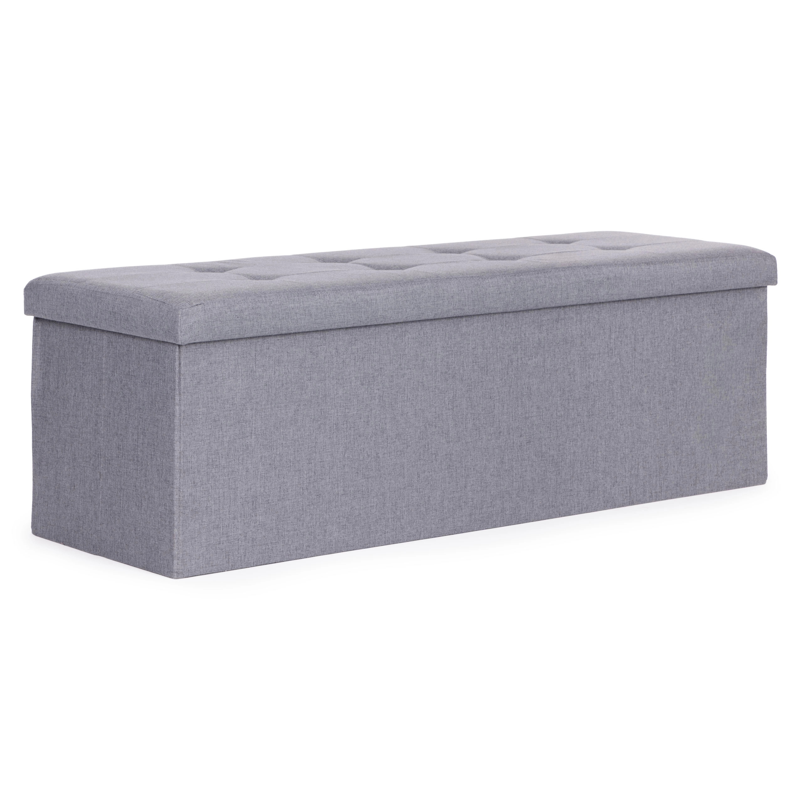 Oblazinjen pokrov zagotavlja udobno sedenje, v notranjosti pa je velikodušen prostor za odeje, blazine ali čevlje – idealno za ohranjanje reda v vsakem prostoru.