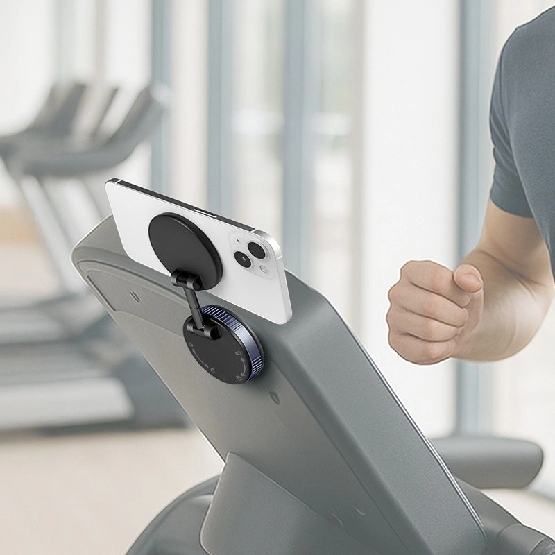 Uživajte v stabilni in udobni uporabi telefona med vožnjo, vadbo ali na poti. Nosilec s priseskom in magnetno glavo uporablja visoko zmogljive magnete N52H za zanesljivo pritrditev in gladko pozicioniranje. Dvoosni sistem z dvema 180° tečajema omogoča natančno nastavitev višine in kota gledanja.