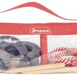 Uživajte v tradicionalni družinski zabavi z igro metanje podkev in obročev znamke Jeujura. Stabilni križ in količki iz masivnega lesa, praktična potovalna embalaža ter varne barve na vodni osnovi zagotavljajo kakovostno in varno igro za otroke od 3 let naprej in odrasle.