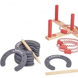 Ta klasična igra za zunaj in znotraj prinaša ure zabave za vso družino. Set vsebuje križ s količki, obroče in podkve za natančno in napeto metanje. Zahvaljujoč skrbni izdelavi iz masivnega bukovega in borovega lesa je igra trpežna, stabilna in prijetna na dotik.