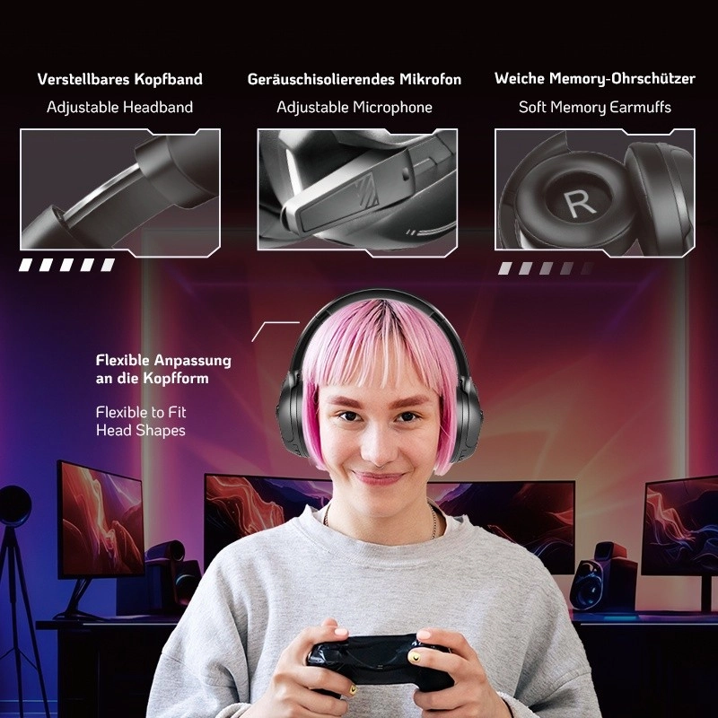 Mehke ušesne blazinice s spominsko peno in nastavljiv naglavni trak se prilagodijo obliki glave in zagotavljajo celodnevno udobje.
