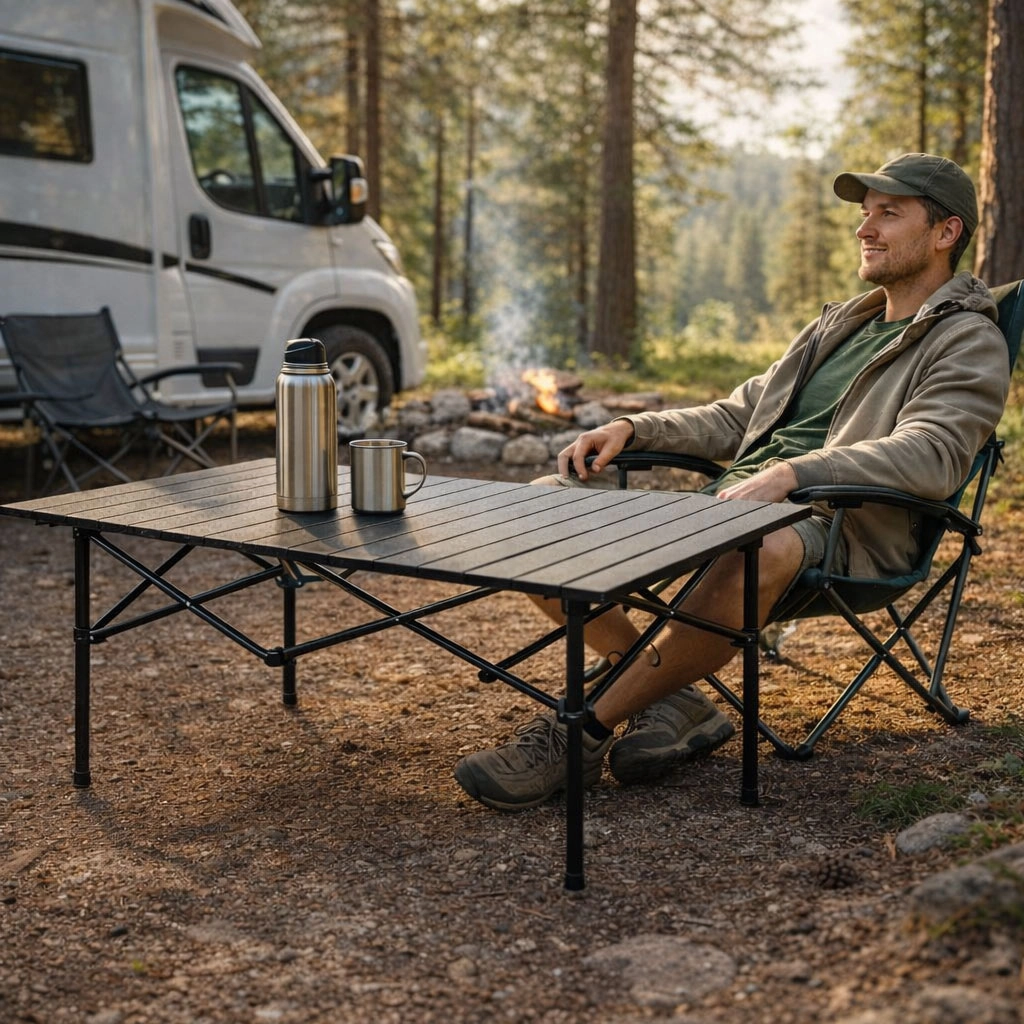 Uživajte v udobju ob vsakem taborniškem ognju. Ta črna kamp miza MultiGarden je zasnovana za hitro uporabo v naravi – od zajtrka pri šotoru do večernega žara na vrtu. Lahka zložljiva konstrukcija in priložena torba jo naredita zanesljivo spremljevalko na izlete k jezeru, v gozd ali na plažo.