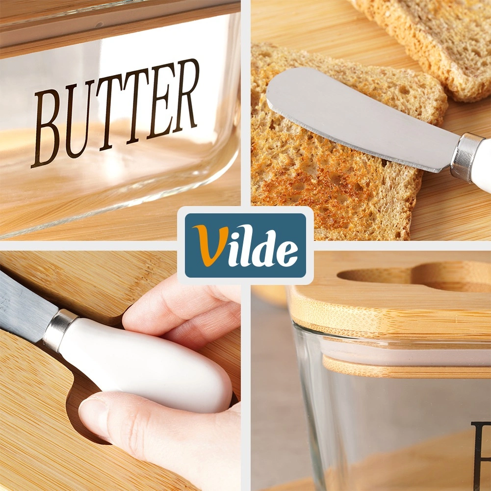 Bambusov pokrov ima namenski utor za nožek za maslo. Nerjaveče rezilo in udoben keramičen ročaj olajšata vsak poteg pri mazanje.