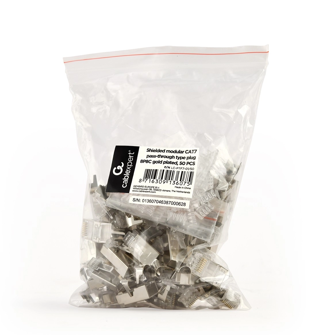 Zaščiteni prehodni konektorji RJ45 za kategorijo CAT7 so zasnovani za hitro in natančno terminacijo omrežnih kablov. Prehodna (pass-through) zasnova olajša razporeditev vodnikov in preverjanje vezave, medtem ko kovinska zaščita in pozlačeni pini 15 µm izboljšujeta prevodnost in odpornost proti koroziji.