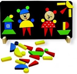Magnetna tabla in leseni koščki sta ključna dela tega kompleta. Koščki z magnetom otrokom omogočajo sestavljanje različnih motivov in zgodb. Komplet ni primeren za otroke, mlajše od 3 let, saj vsebuje majhne dele, ki lahko predstavljajo nevarnost zaužitja.