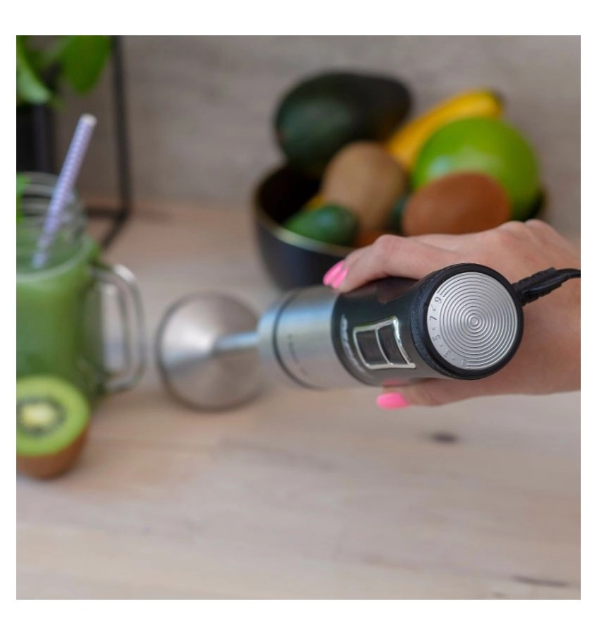 Iščete zanesljiv palični mešalnik za vsakodnevno kuhanje? Ta model z močjo 1500 W prinaša hitre in natančne rezultate pri pripravi juh, omak, pirejev, smutijev in otroških kašic. Trpežna mešalna noga iz nerjavnega jekla je varna za stik z živili in odporna na visoke temperature, zato lahko mešate neposredno v vročem loncu brez čakanja.