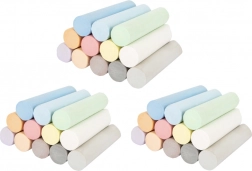 Ta ugoden komplet vsebuje tri ločena pakiranja po 12 barvnih kred, skupaj torej 36 kosov. Široka paleta pastelnih barv navdihuje otroke k ustvarjanju na svežem zraku in doma. Zaradi večjih dimenzij in trdnejšega preseka se krede dobro držijo v otroški roki, se manj drobijo in puščajo izrazito sled.