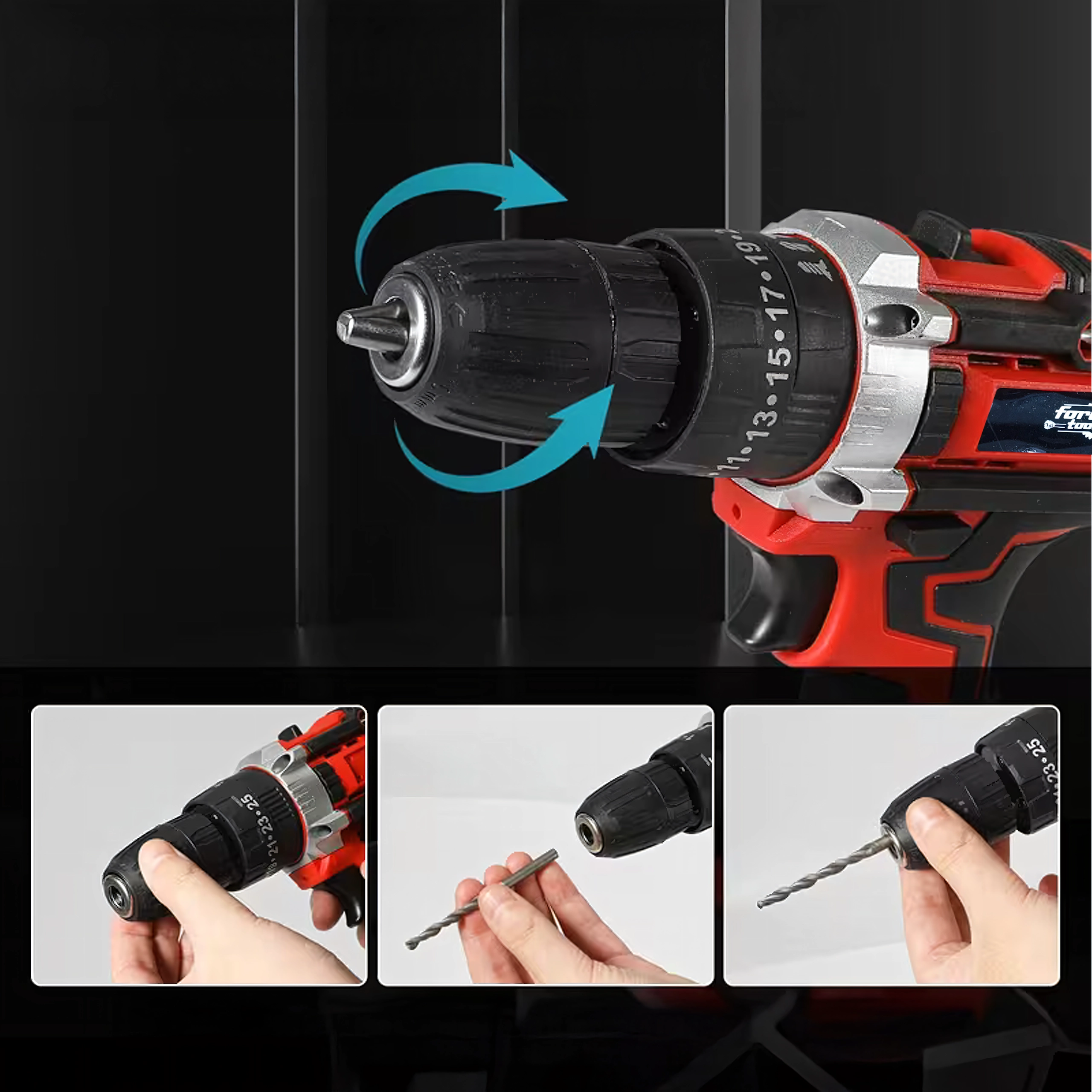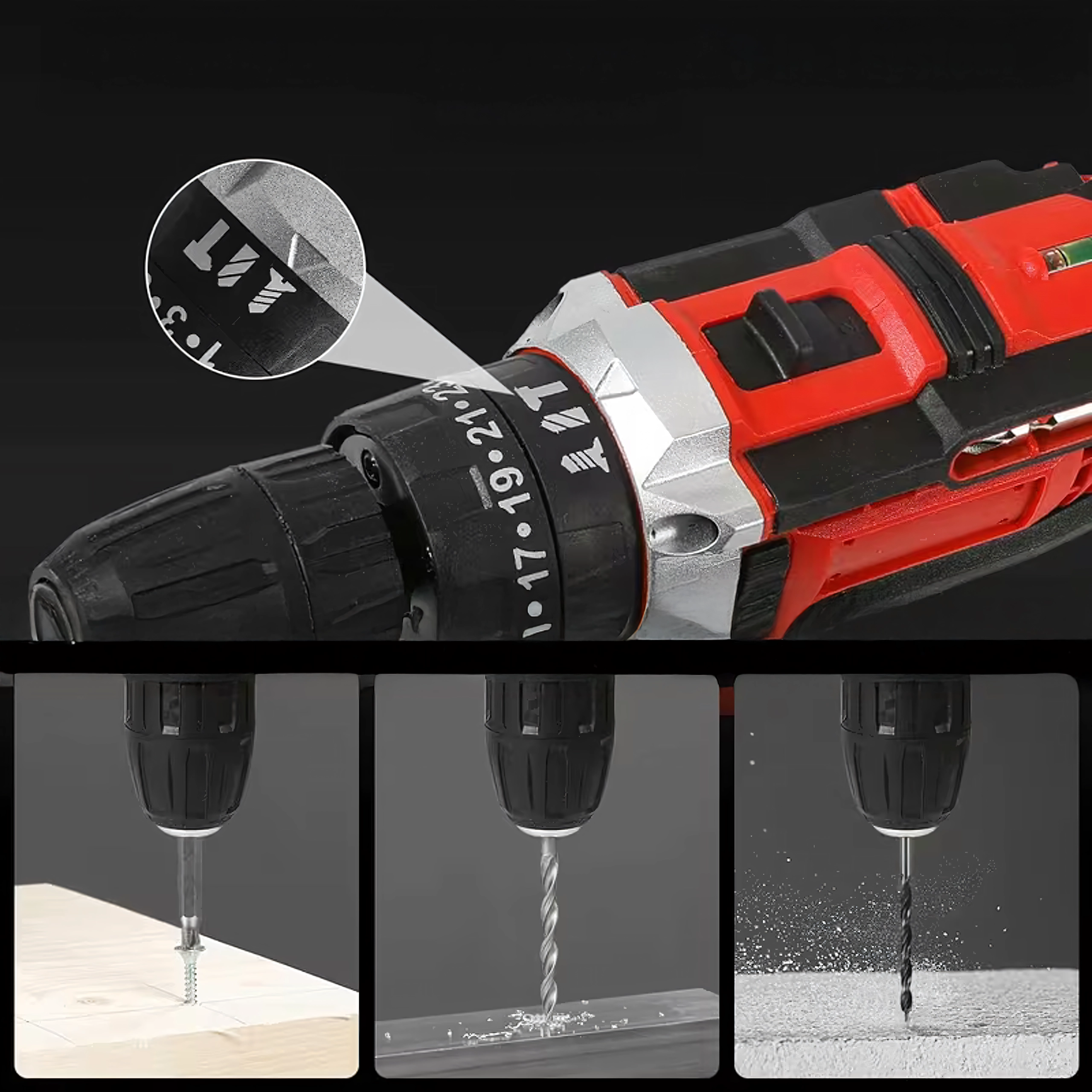 Nastavljiva sklopka z označenim številčnikom omogoča prilagoditev sile zategovanja glede na material in vrsto vijaka. Idealno za občutljiva dela in zahtevnejše vrtanje.