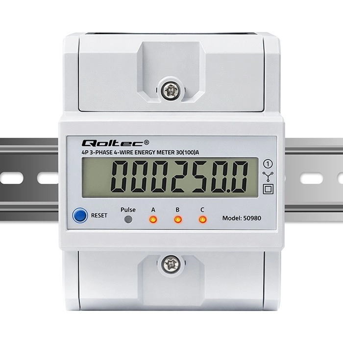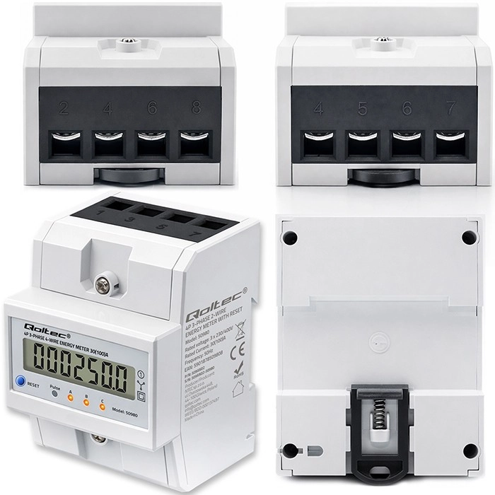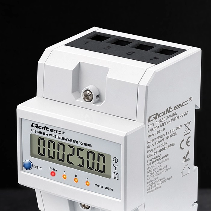 Ta trifazni, štirižilni električni števec je zanesljiva rešitev za sprotno spremljanje porabe električne energije. LCD-zaslon 6+1 prikazuje prevzeto energijo v kWh na podlagi merilnih impulzov, medtem ko LED-dioda signalizira trenutni odjem s pulzno konstanto 400 imp/kWh. Zaradi kompaktnih mer in montaže na DIN letev 35 mm je namestitev hitra in nezahtevna.