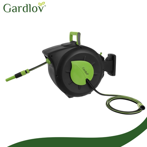 V paketu prejmete: samodejni navijalnik GARDLOV, stenski nosilec, zaklepni zatič, 7-načinsko pištolo, nastavljivo šobo, 30 m vrtno cev, 2 m dovodno cev, univerzalni nastavek za pipe, spojko 1/2", hitrospojko 1/2", 4× vložek, 4× vijak, večjezična navodila in barvito embalažo proizvajalca.